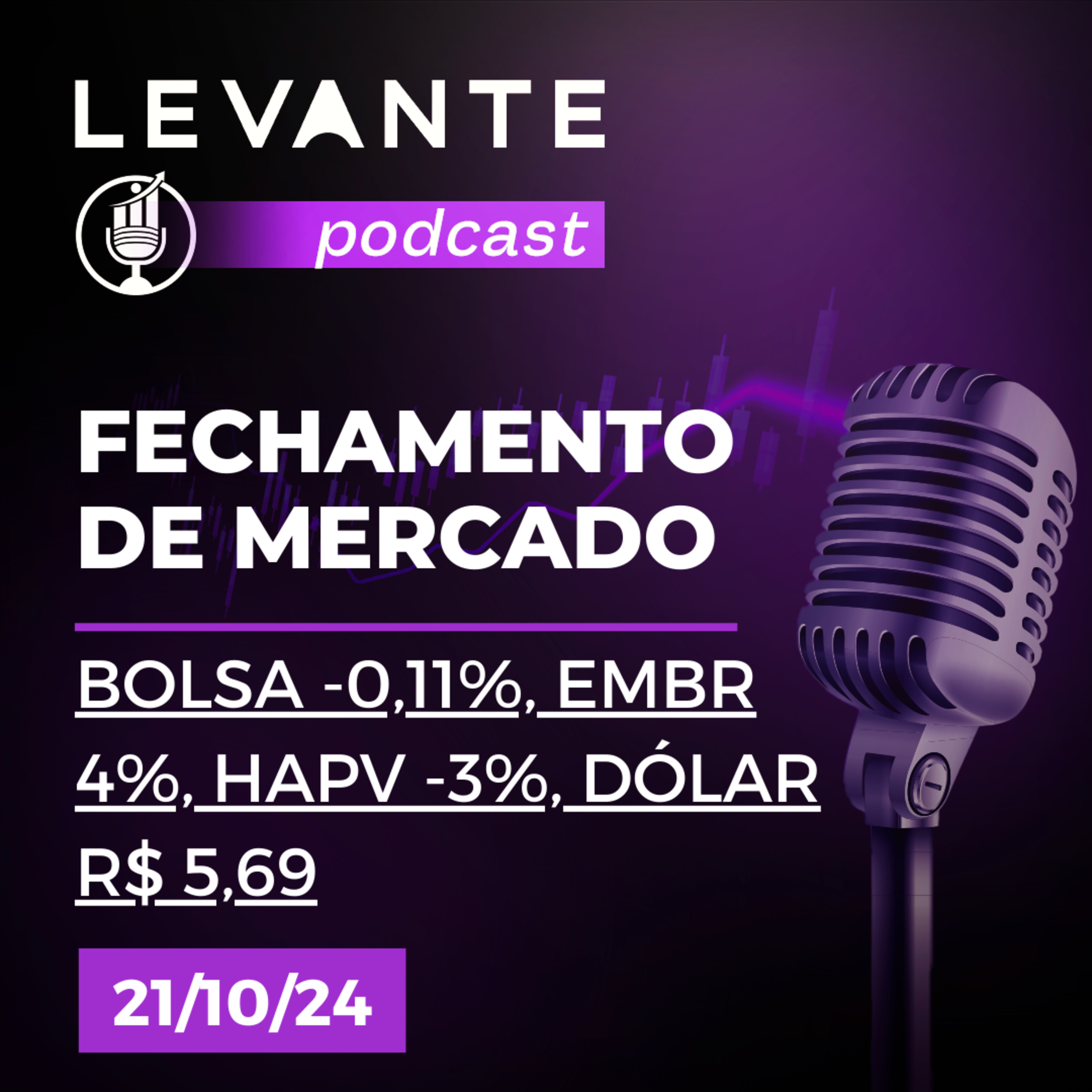 Título/Thumb 21/10/24: Bolsa -0,11%, EMBR 4%, HAPV -3%, Dólar R$ 5,69
