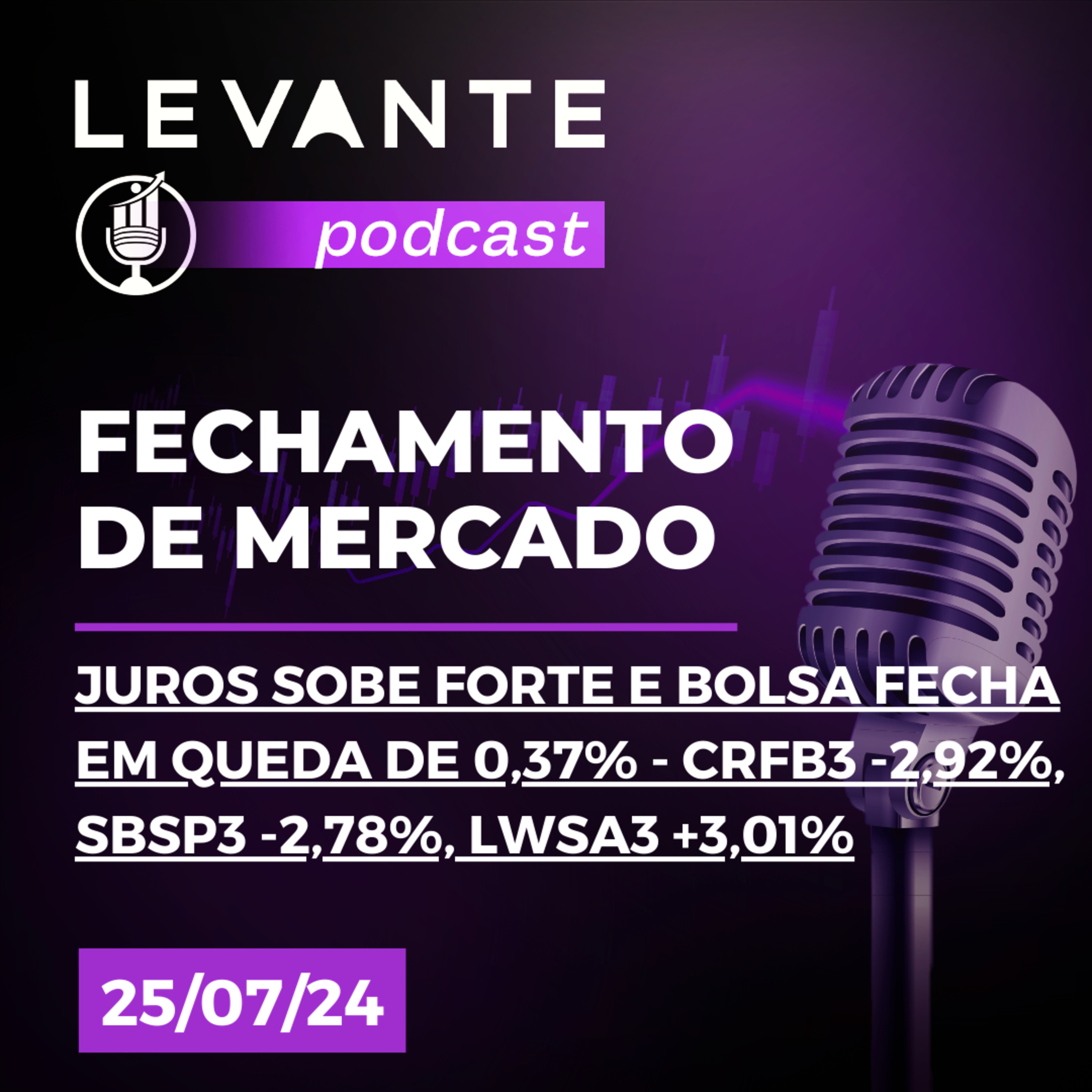 25/07 – Juros sobe forte e bolsa fecha em queda de 0,37% - CRFB3 -2,92%, SBSP3 -2,78%, lwsa3 +3,01%