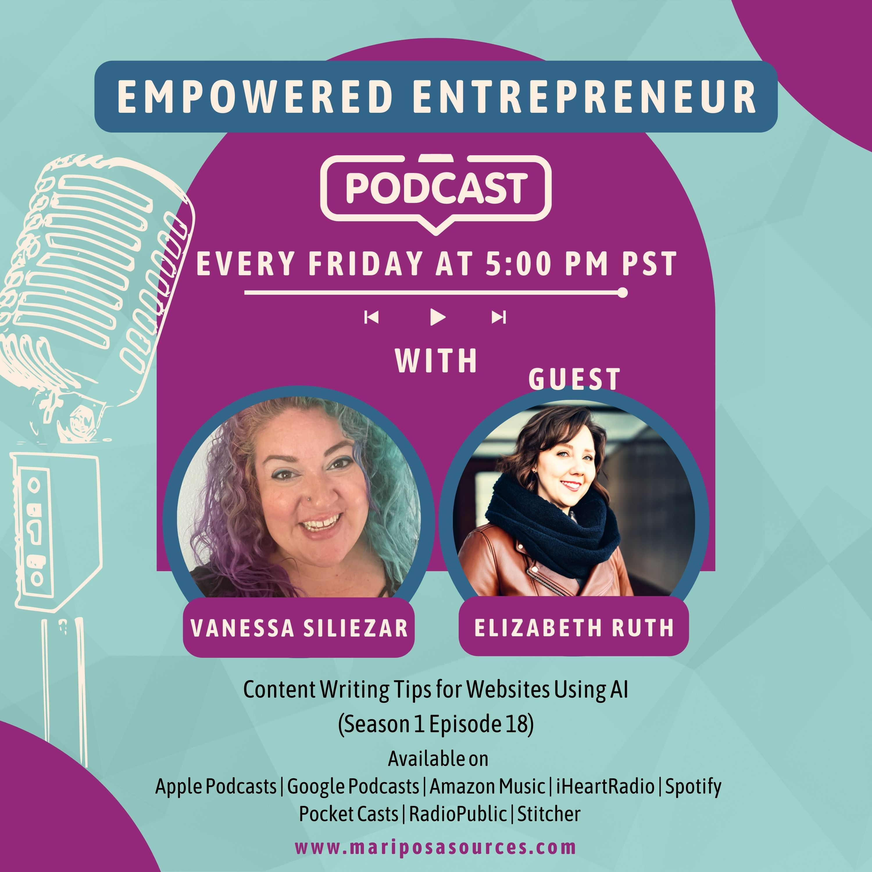 In this episode of Empowered Entrepreneur, I chat with Elizabeth Ruth, a marketing strategist who helps entrepreneurs use AI to create effective marketing content. We discuss how to use prompts to create AI content that is engaging and informative, how to repurpose themes for multiple content pieces, and how to improve SEO with keywords. We also talk about the importance of updating your content on your webpage at least once a month.