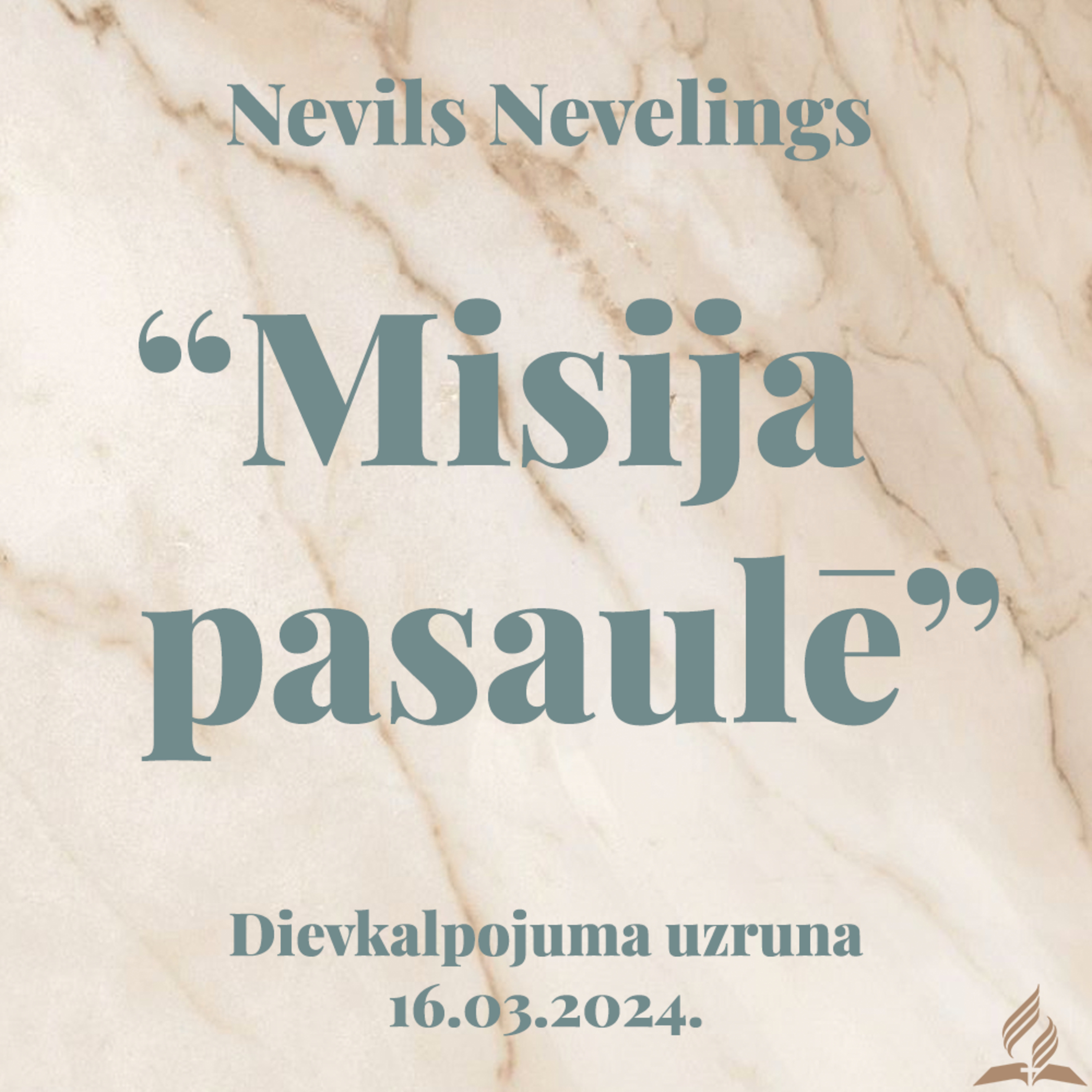 🔸 Uzrunas tēma: "Misija pasaulē", runā Nevils Nevelings.