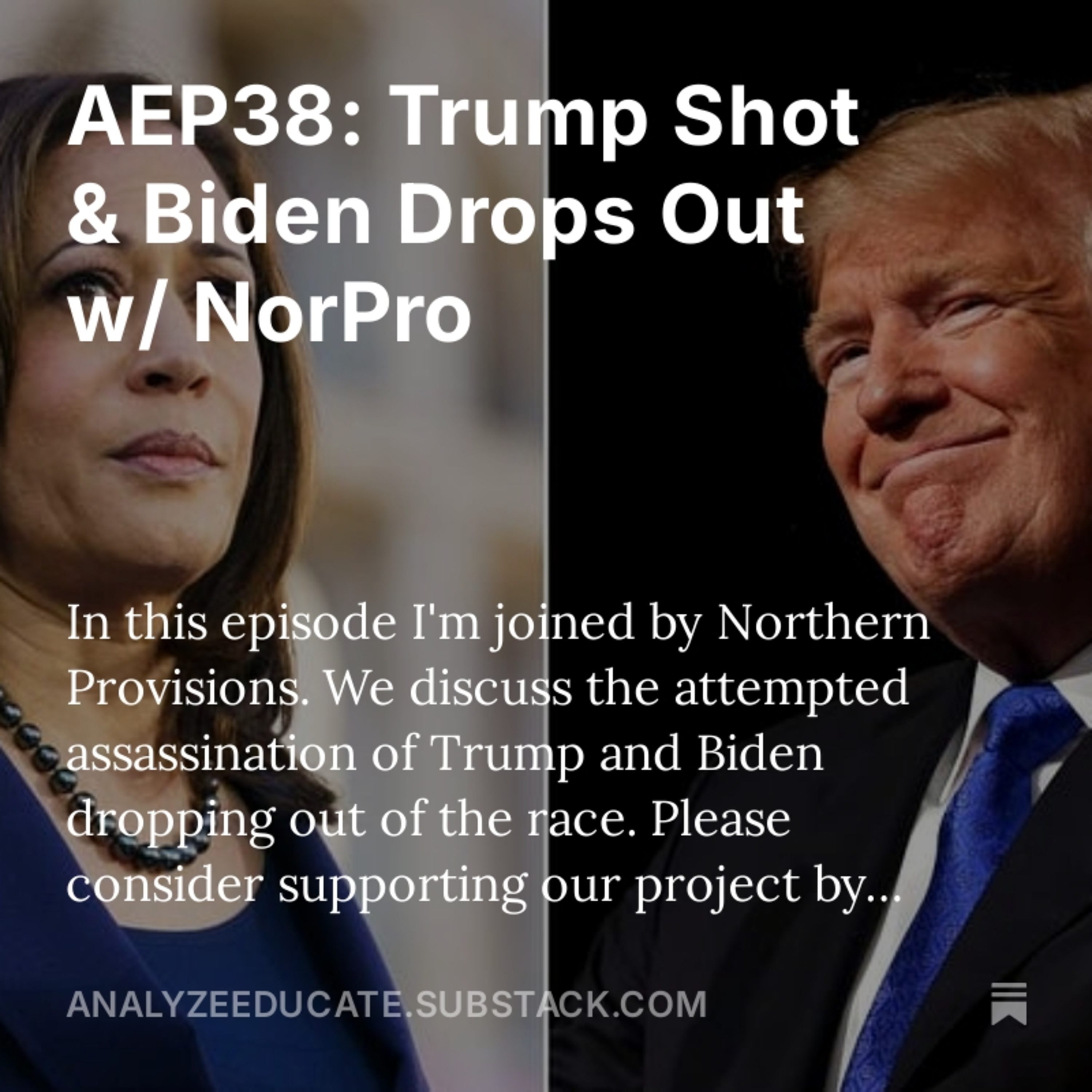 In this episode I'm joined by Northern Provisions. We discuss the attempted assassination of Trump and Biden dropping out of the race. Please consider supporting our project by donating to us. Ways to donate and other resources here: https://linktr.ee/analyzeeducate.