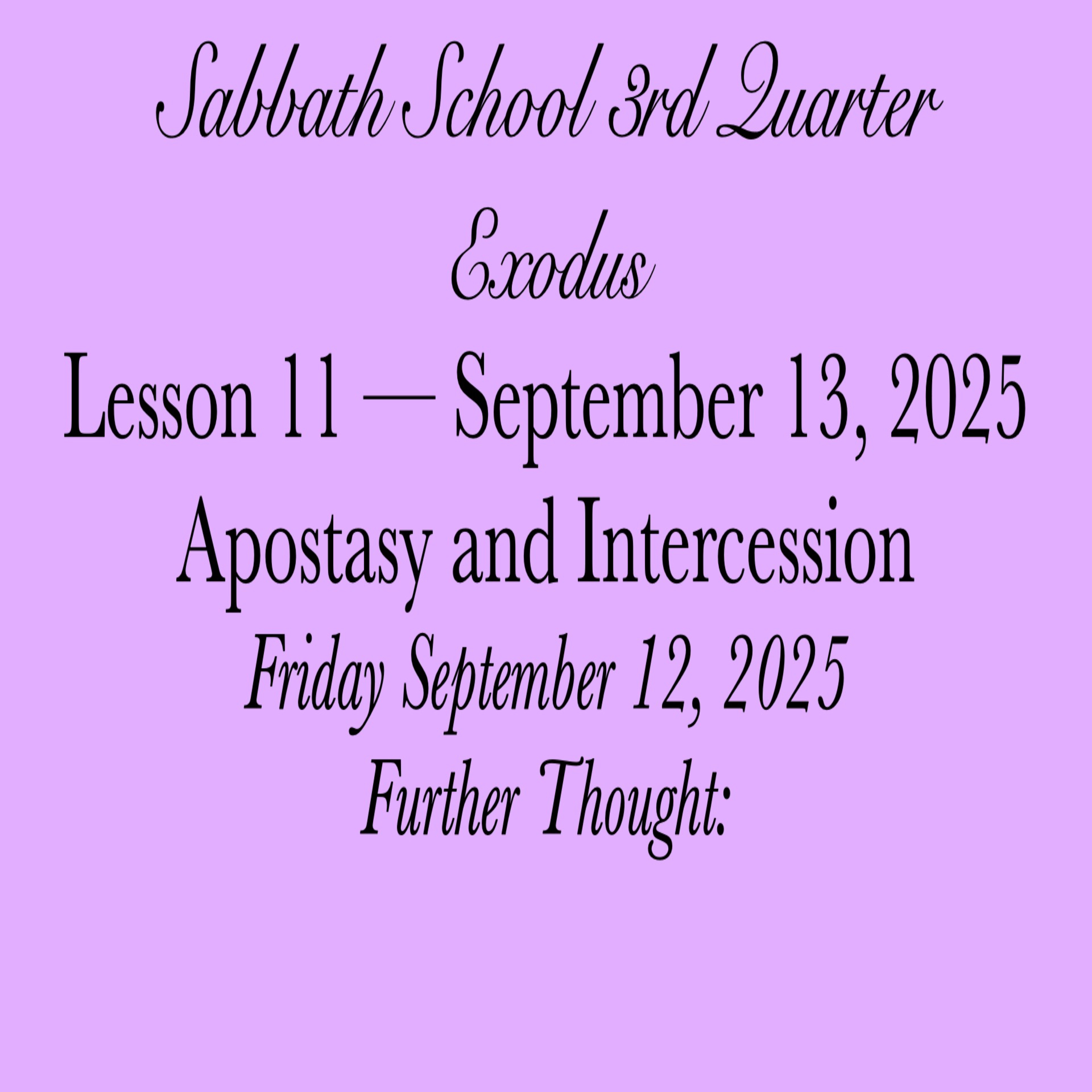 #ApostasyAndIntercession #FurtherThought #12September2025 #Exodus #SabbathSchool #Week11 #AbundantLife #ThirdQuarter2025