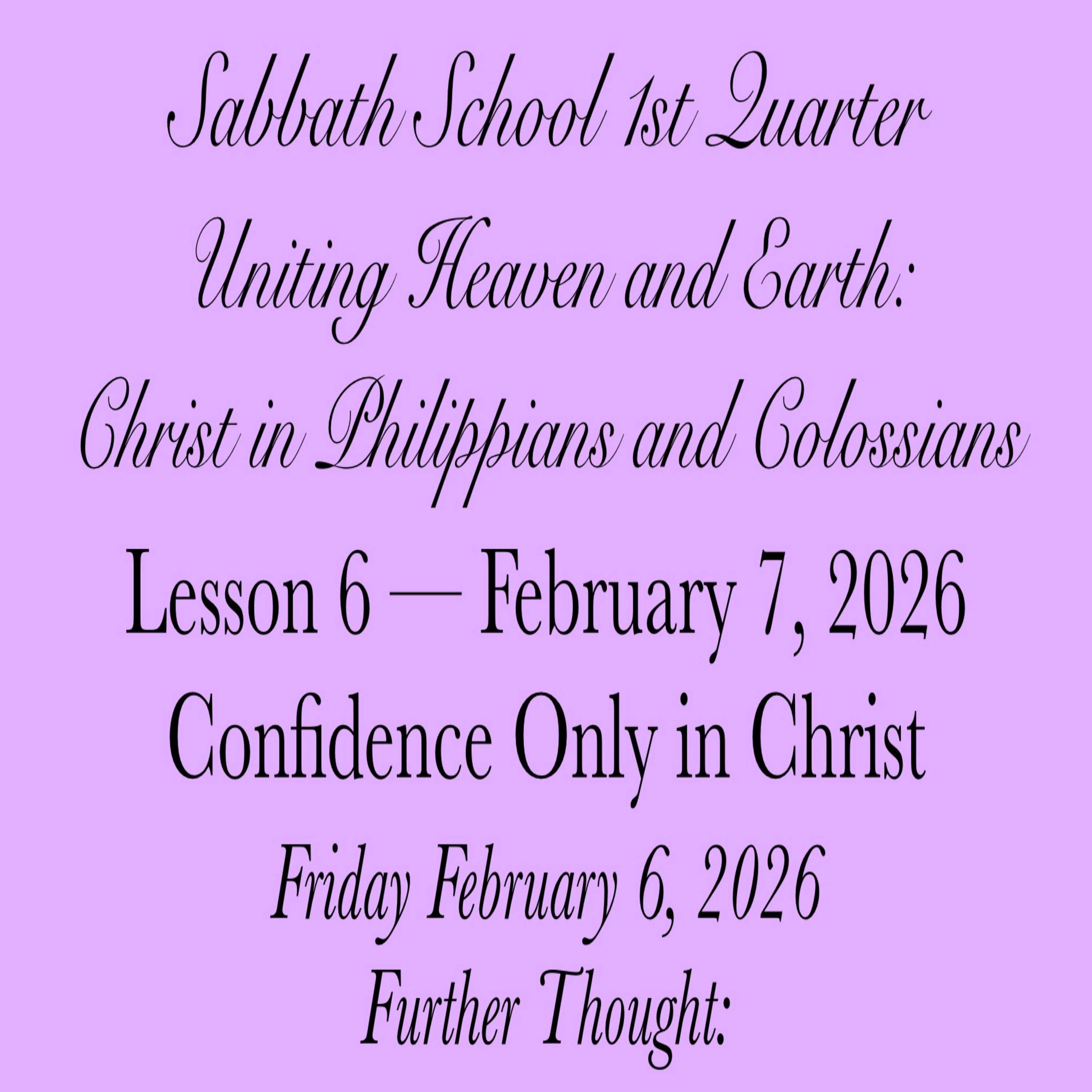 #ConfidenceOnlyInChrist #FurtherThought #6February2026 #UnitingHeavenandEarthChristinPhilippiansandColossians #SabbathSchool #Week6 #AbundantLife #FirstQuarter2026