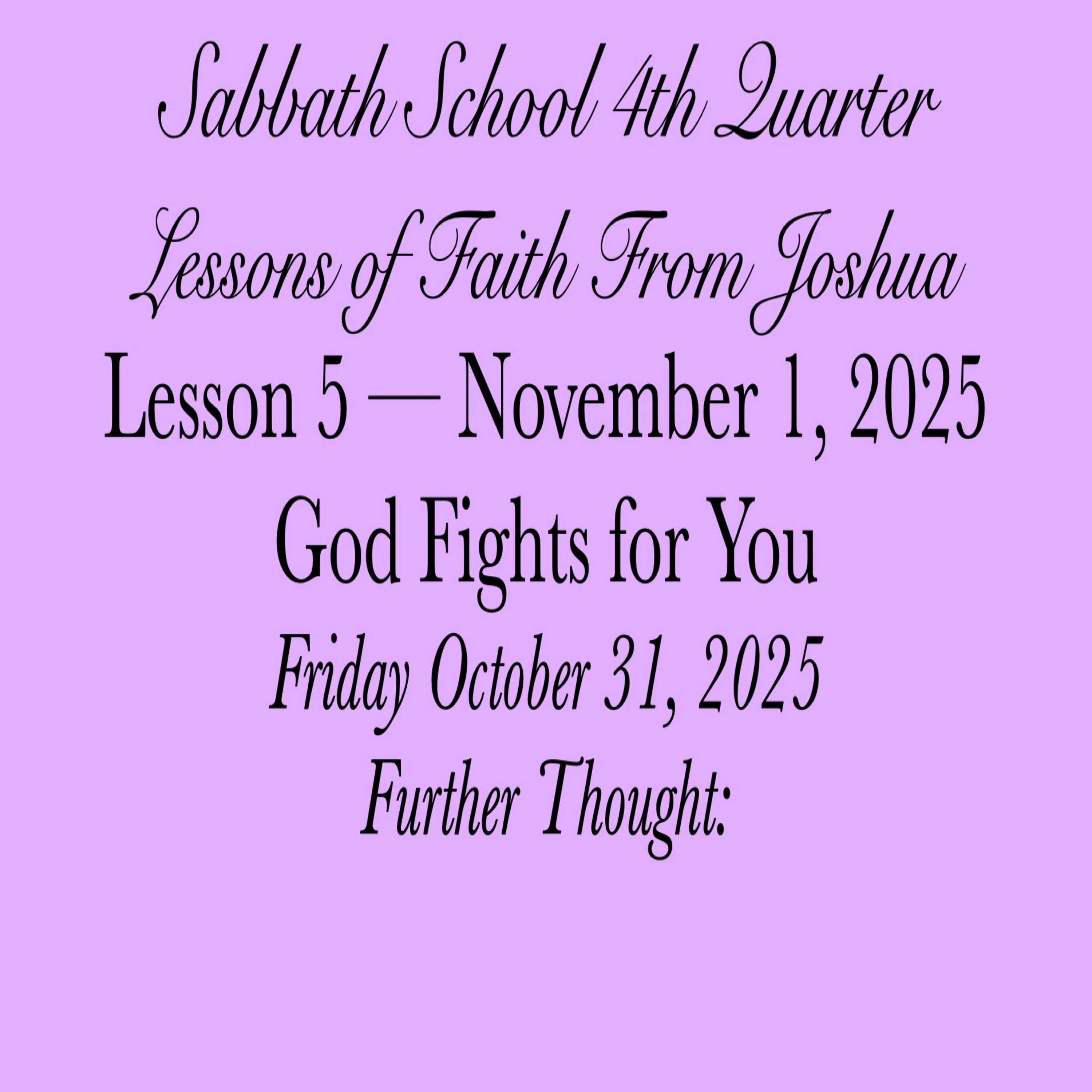 #GodFightsForYou #FurtherThought #31October2025 #LessonsofFaithFromJoshua #SabbathSchool #Week5 #AbundantLife #FourthQuarter2025