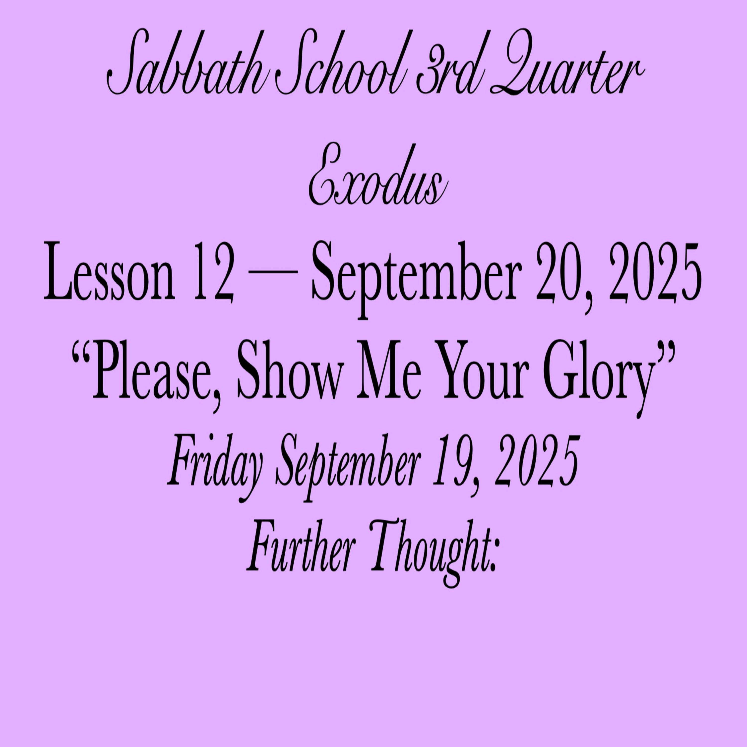 #PleaseShowMeYourGlory #FurtherThought #19September2025 #Exodus #SabbathSchool #Week12 #AbundantLife #ThirdQuarter2025