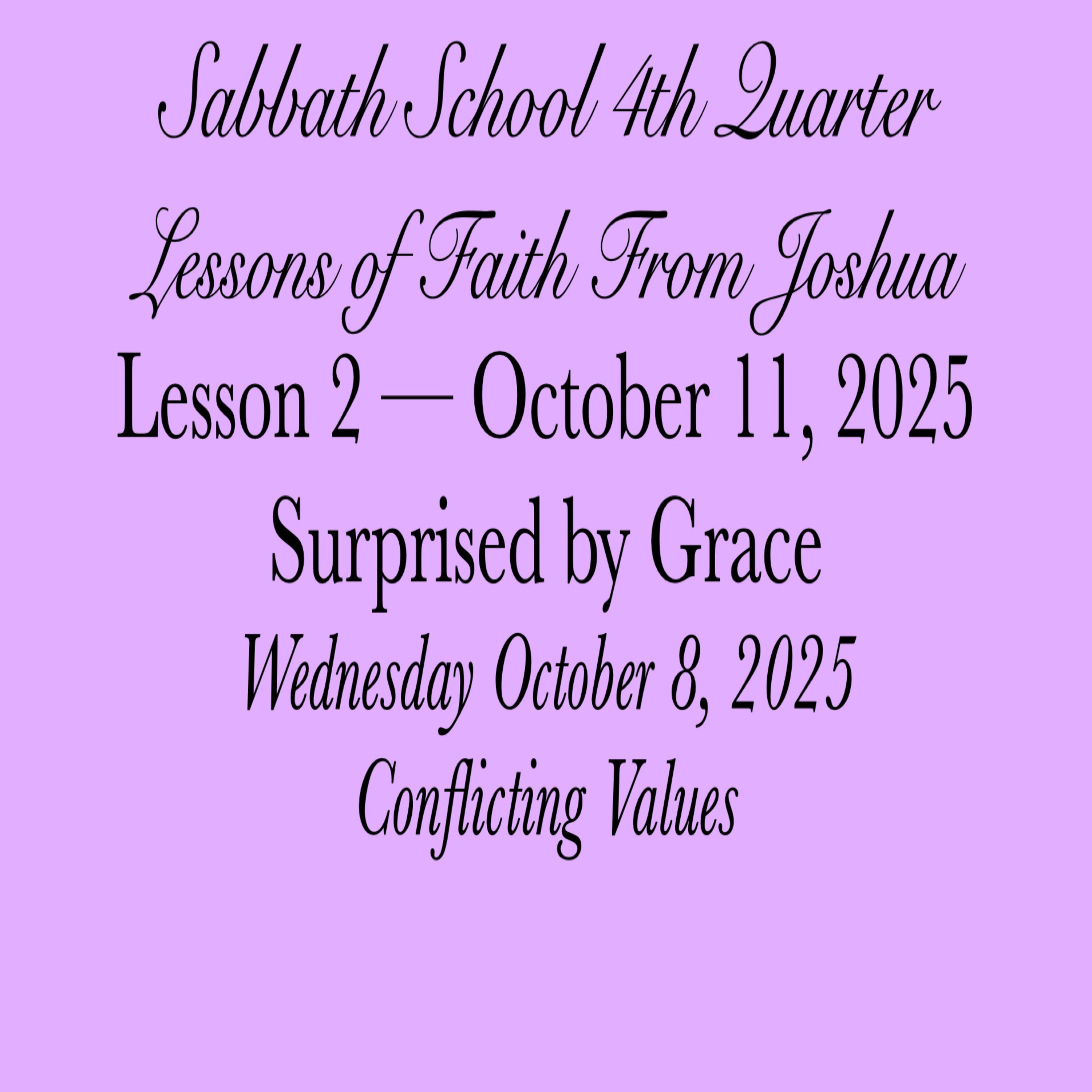 #SurprisedByGrace #ConflictingValues #8October2025 #LessonsofFaithFromJoshua #SabbathSchool #Week2 #AbundantLife #FourthQuarter2025
