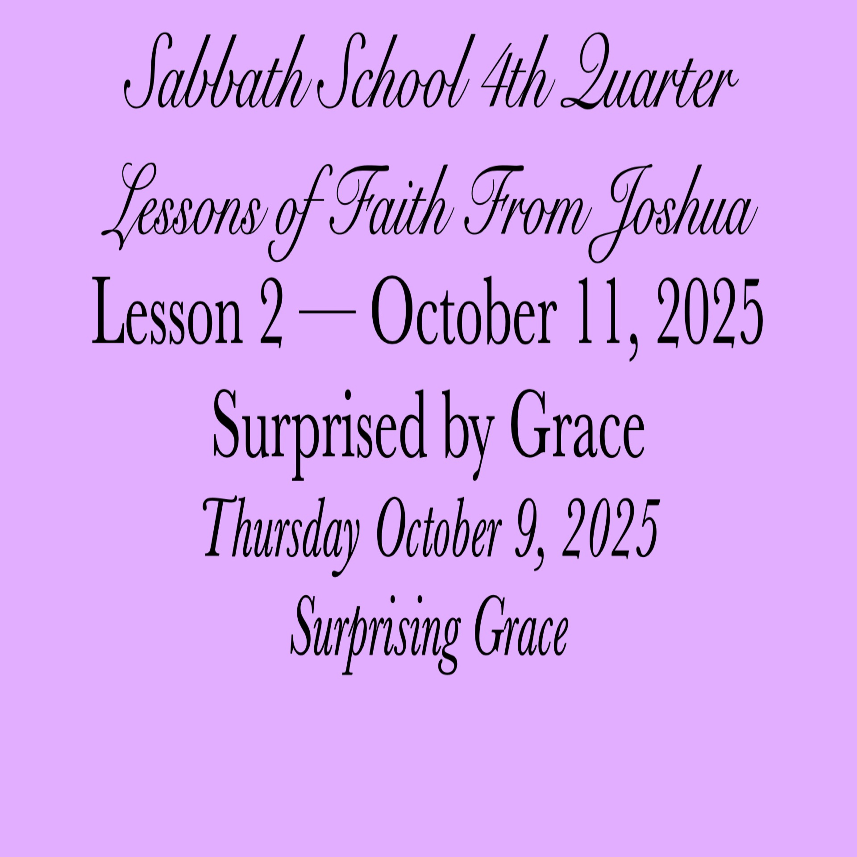 #SurprisedByGrace #SurprisingGrace #9October2025 #LessonsofFaithFromJoshua #SabbathSchool #Week2 #AbundantLife #FourthQuarter2025