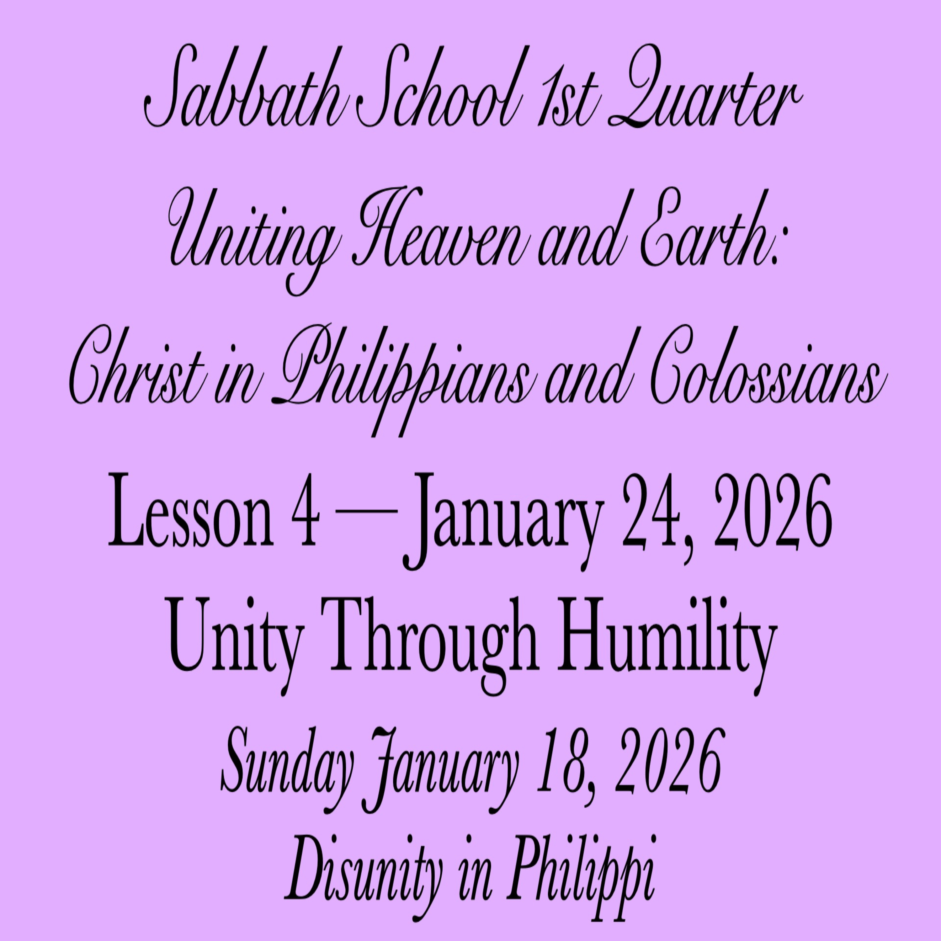 #UnityThroughHumility #DisunityInPhilippi #18January2026 #UnitingHeavenandEarthChristinPhilippiansandColossians #SabbathSchool #Week4 #AbundantLife #FirstQuarter2026