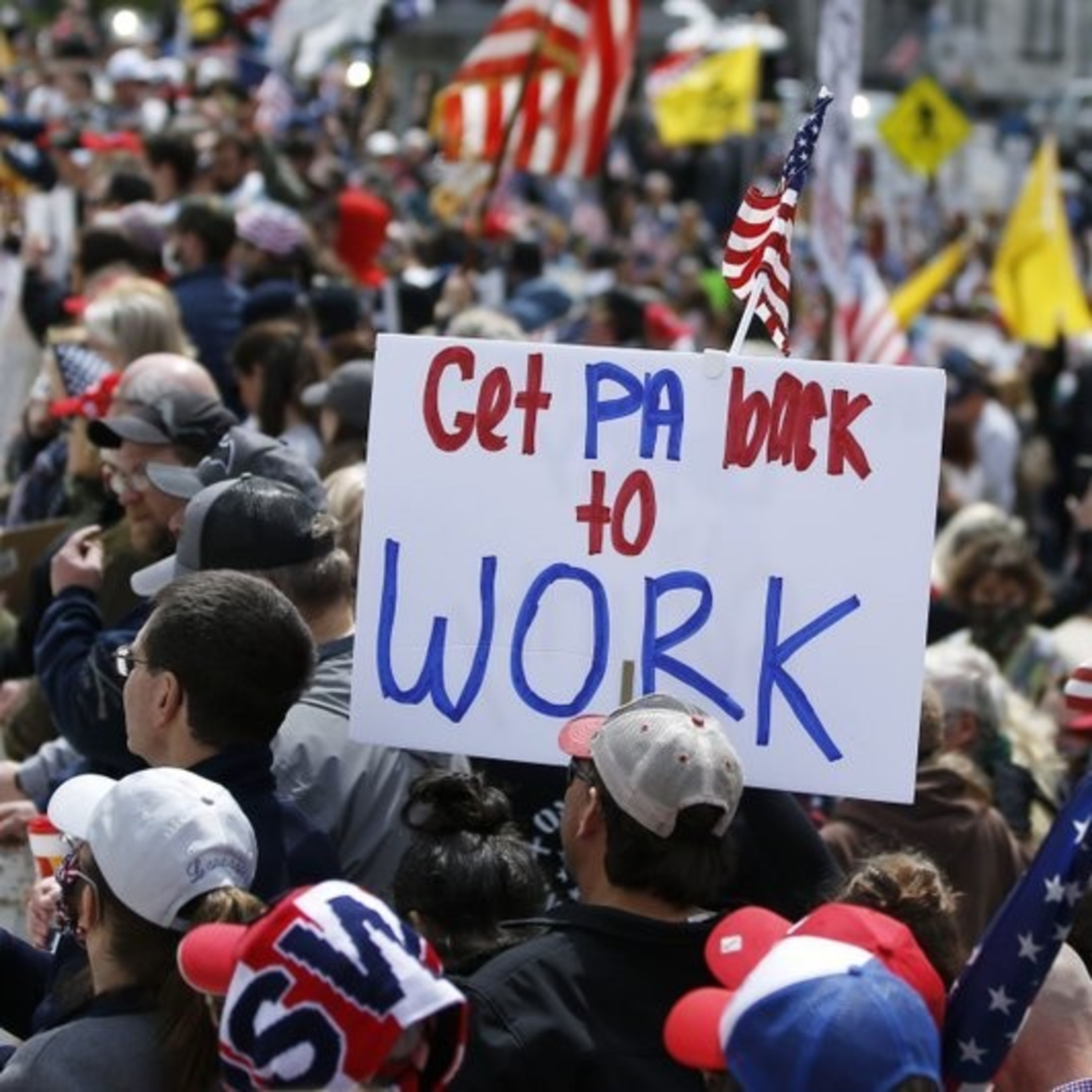 Interviews while protesting in Harrisburg at the #ReOpenPA Rally.