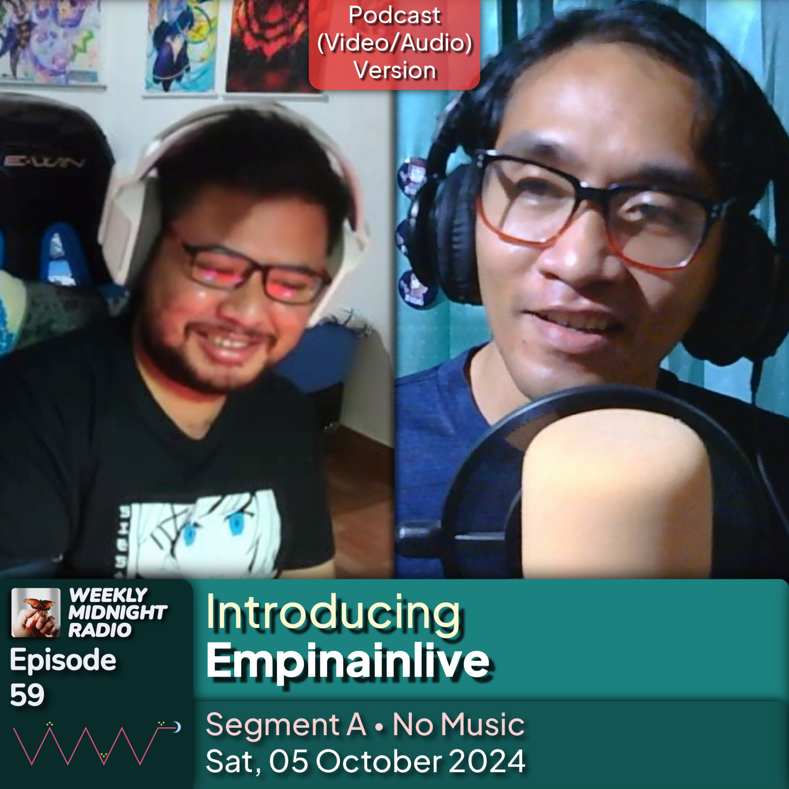 Weekly Midnight Radio is a program aired every Saturday, 9 PM to 12 AM (GMT+7), on https://twitch.tv/Adli_HM. This program consists of three segments, where there will be a guest star, and the purpose is to introduce/get to know more about this guest star. In this episode, the guest star is Empinainlive aka Empinain.