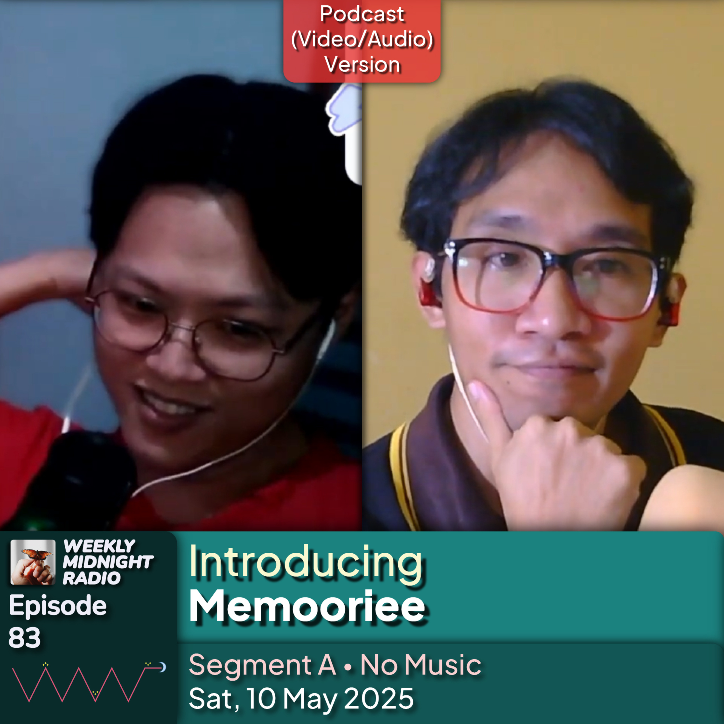 Weekly Midnight Radio is a program aired every Saturday, 9 PM to 12 AM (GMT+7), on https://twitch.tv/Adli_HM and https://www.youtube.com/@Adli_HM. This program consists of three segments, where there will be a guest star, and the purpose is to introduce/get to know more about this guest star. In this episode, the guest star is Memooriee aka Memooriee.