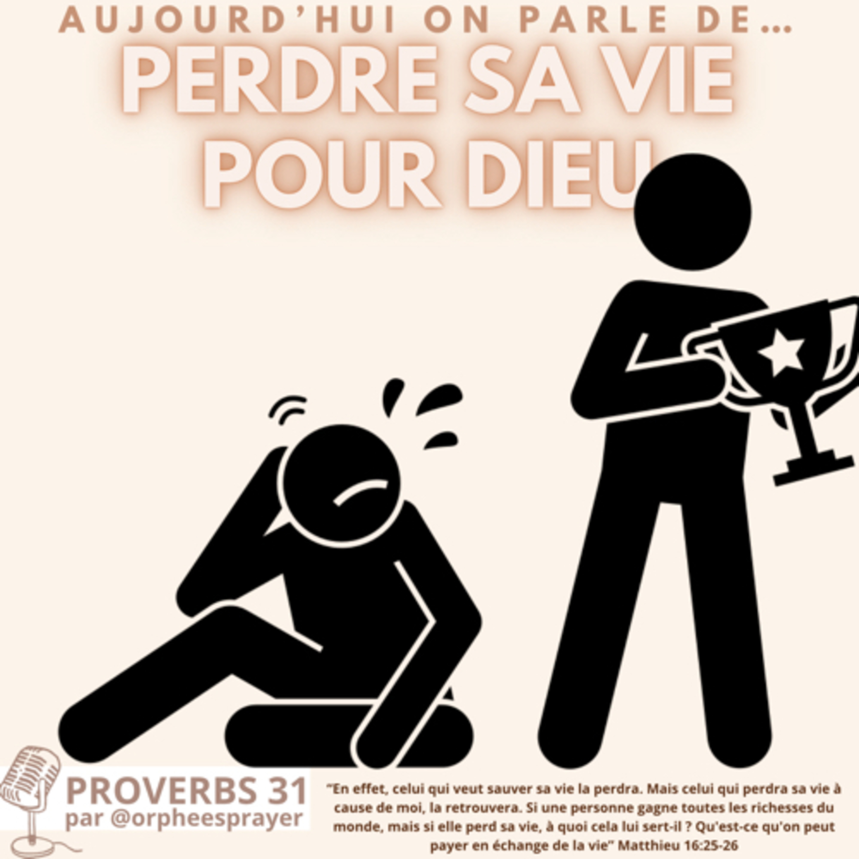 IG & TikTok : orpheesprayer đŁď¸đ || Coucou ma chĂŠrie câest un plaisir de te retrouver pour ce nouvel ĂŠpisode ! Aujourdâhui on sâinspire de lâhistoire de Rahab quâon a vu un peu plus tĂ´t dans la semaine mais aussi Ă partir de ce verset : âEn effet, celui qui veut sauver sa vie la perdra. Mais celui qui perdra sa vie Ă cause de moi, la retrouvera. Si une personne gagne toutes les richesses du monde, mais si elle perd sa vie, Ă quoi cela lui sert-il ? Qu'est-ce qu'on peut payer en ĂŠchange de la vieâ Matthieu 16:25-26 âđž Jâespère que ça te plaira et on se retrouve bientĂ´t pour plus dâĂŠpisodes đ