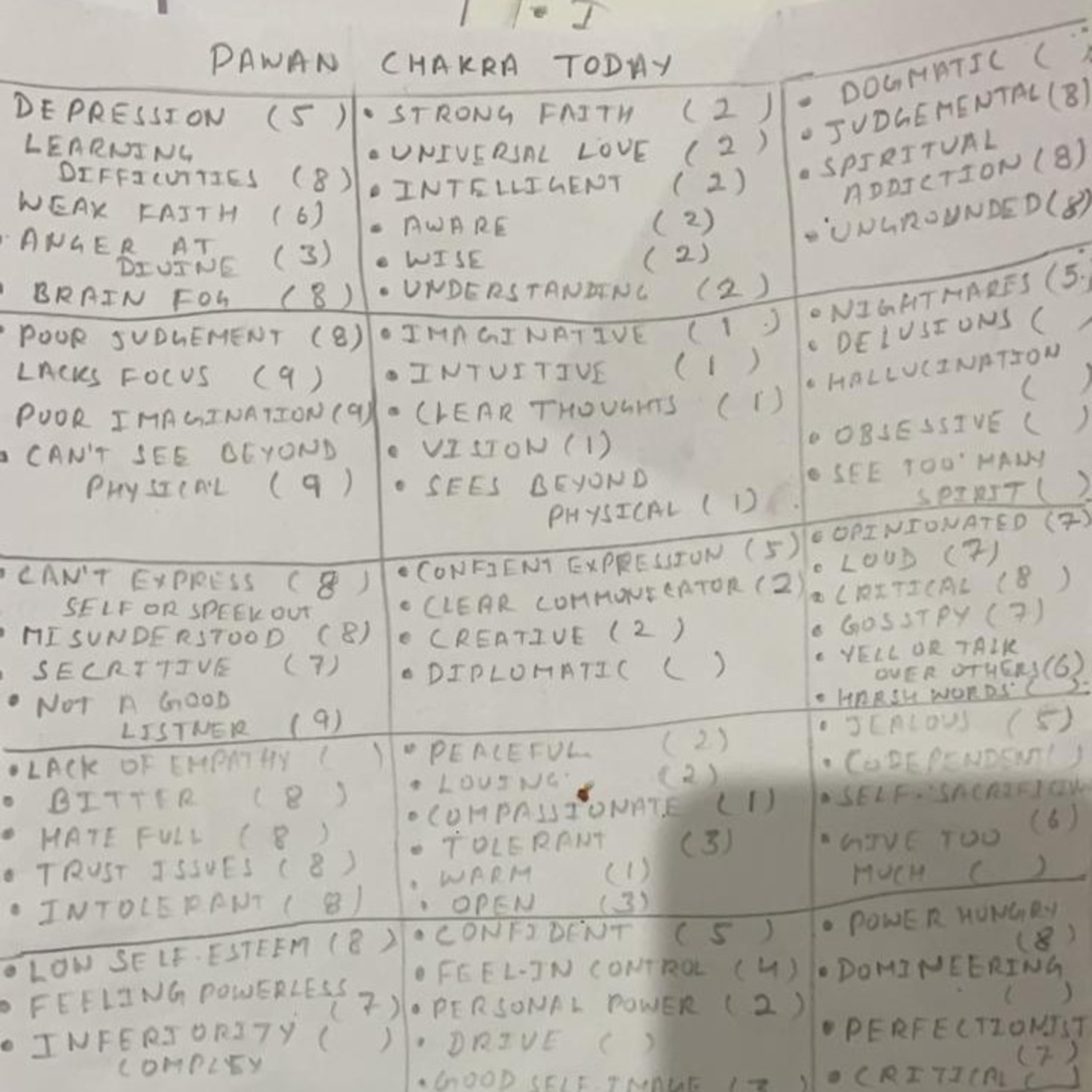 Pawan: Hari Om Tatsat ๐๐ป This is my Chakra Analyses as first time I was checking this in yesterdayโs night Satsang. I learn that How I can give number between 1-10 to find out that what is overactive as on Right side and Blocked on left side and Balanced Emotion is in Between which need to Active for the Balanced Yogi Life.