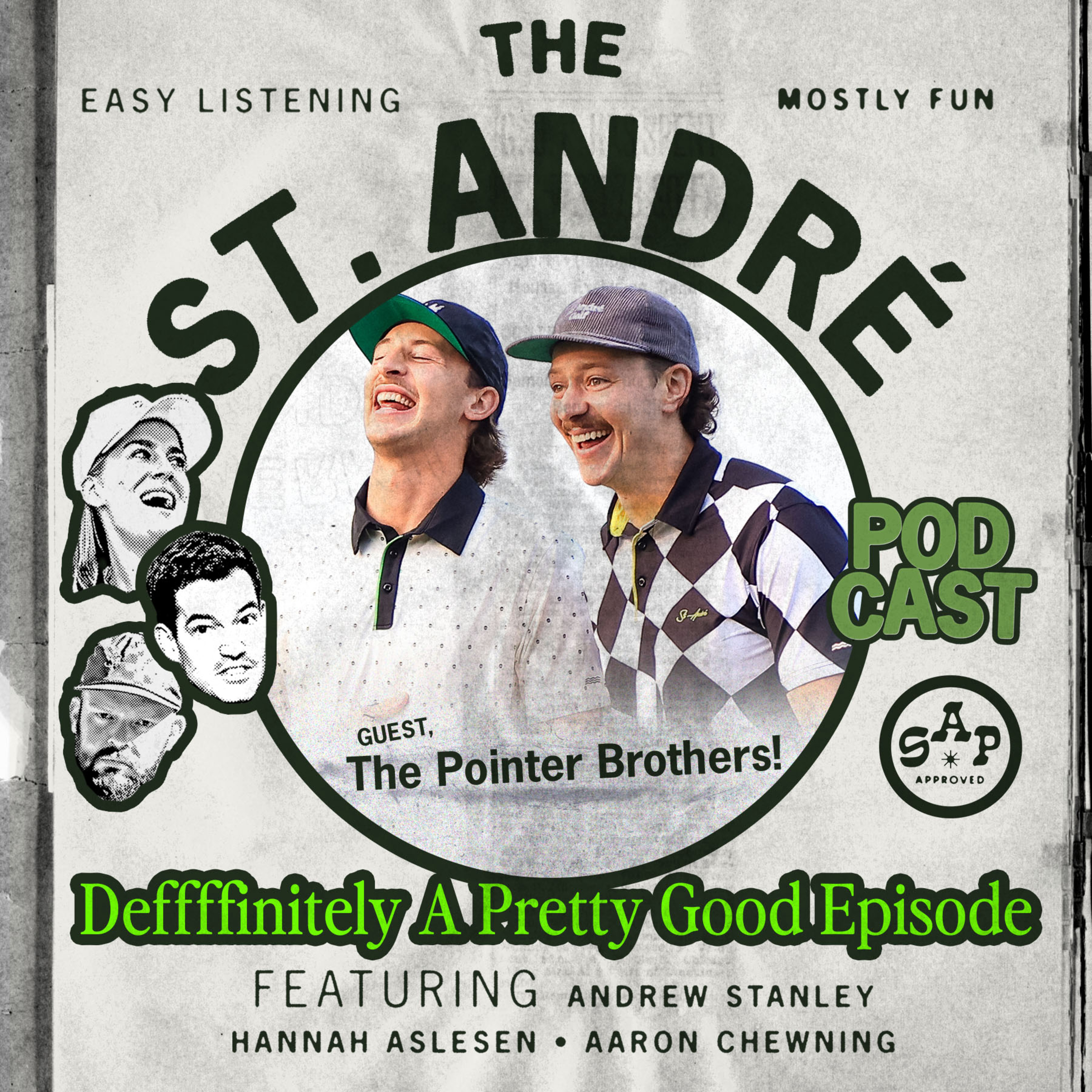 The St. André Podcast hits the road for our first remote episode and our first featuring not one, but TWO guests. The Pointer Brothers, Henry and Mike, hail from Boston and are best known for their viral handshake celebrations that could occasionally maybe feature women's undergarments? Hard to say. Take a deep dive into Mike's Hinge profile, hear way too many details regarding men in thongs, and huzz cheese. Don't ask questions, just enjoy.