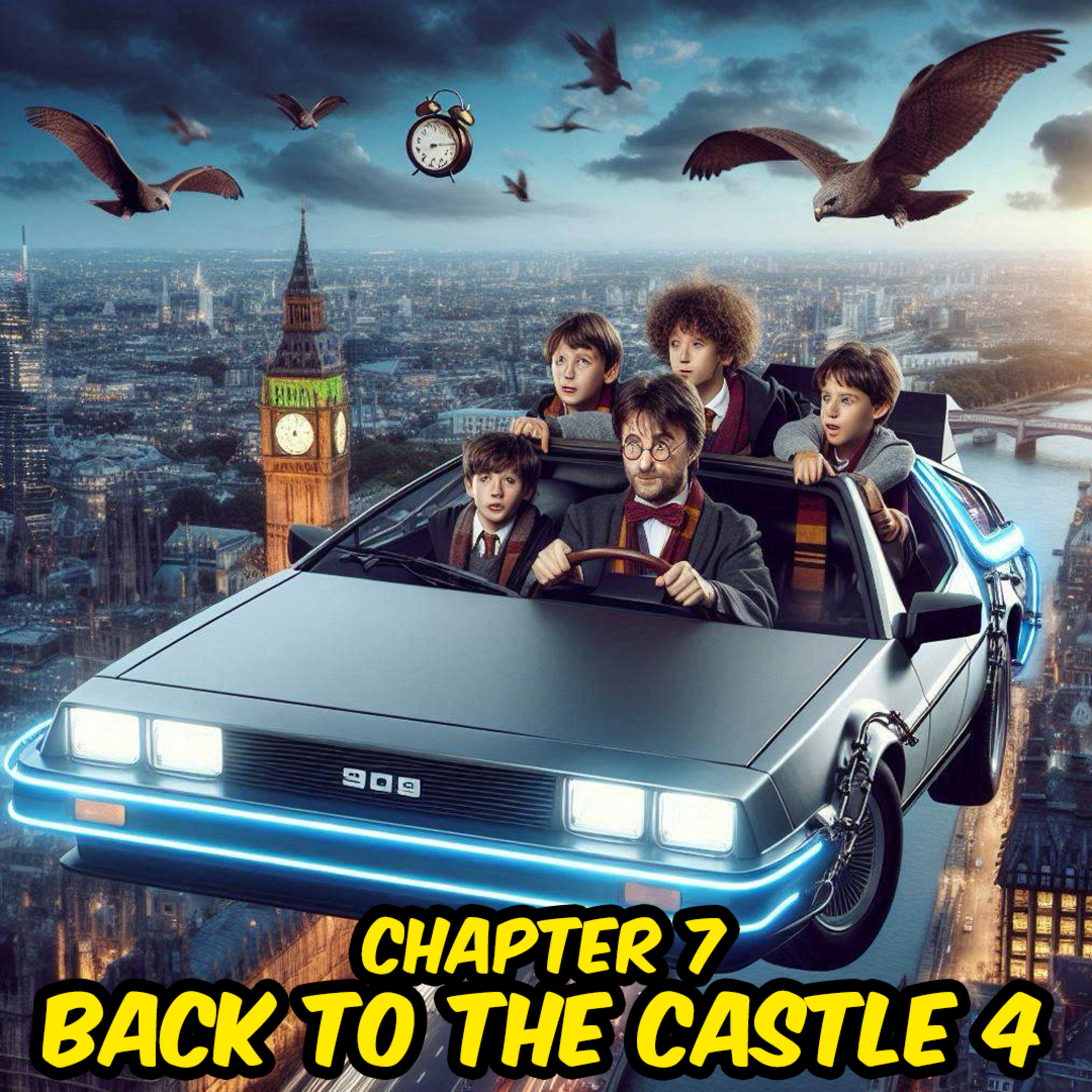 In Chapter 7, the boys embark on an adventure in the skies with their headmaster Harry Potter, who’s souped up a car to fly them to Hogwarts.