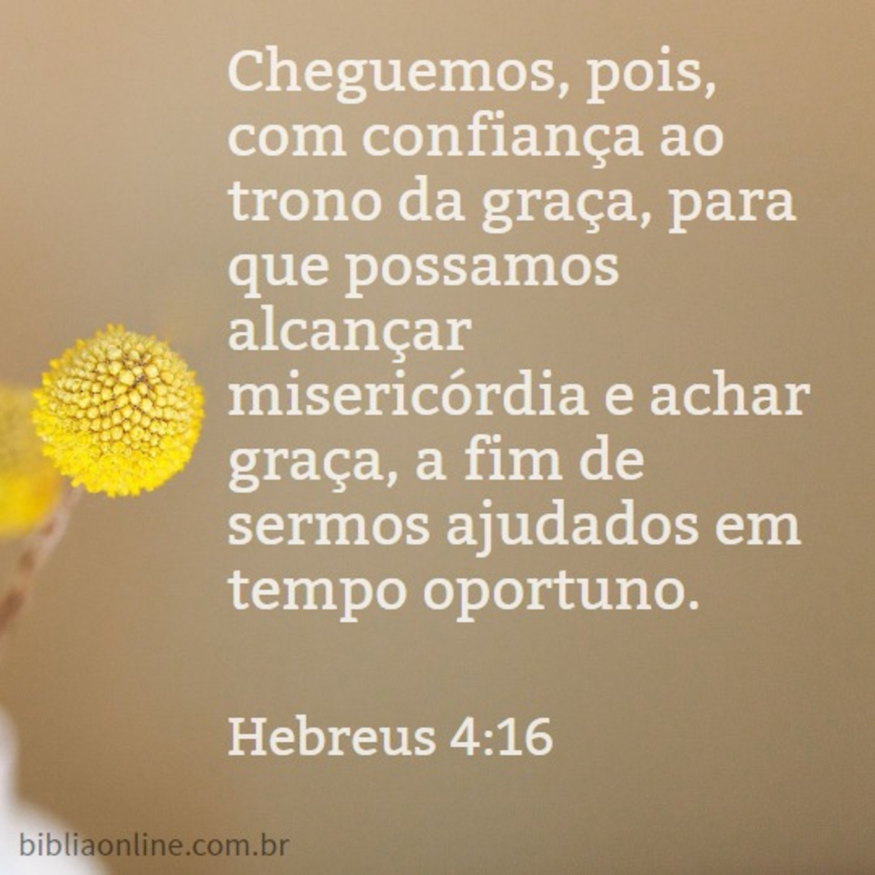 Cheguemos, pois, com confiança ao trono da graça, para que possamos alcançar misericórdia e achar graça, a fim de sermos ajudados em tempo oportuno. Hebreus 4:16
