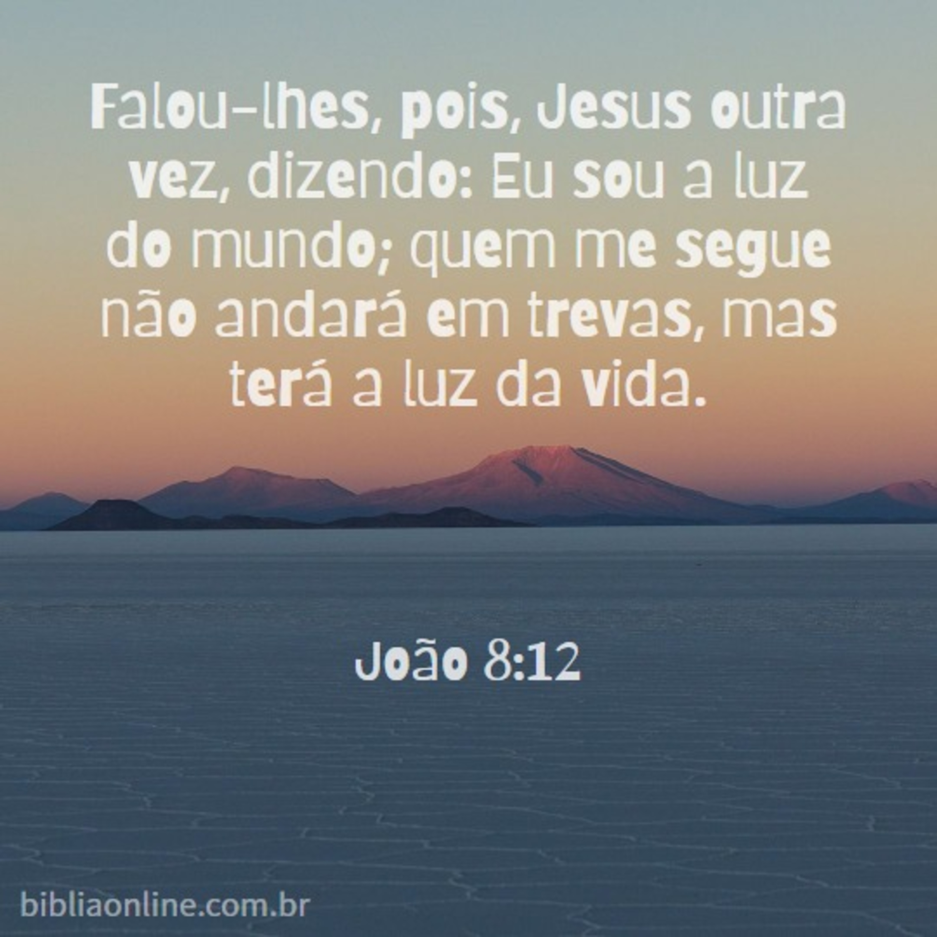 Falou-lhes, pois, Jesus outra vez, dizendo: Eu sou a luz do mundo; quem me segue não andará em trevas, mas terá a luz da vida. João 8:12