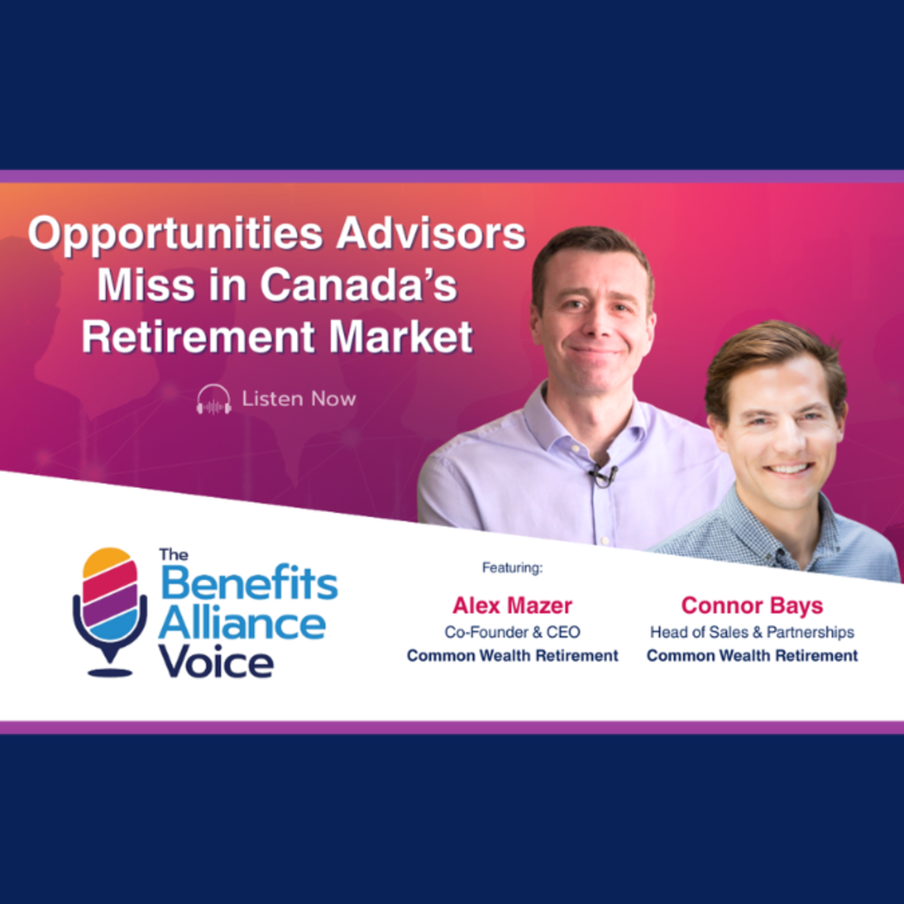 Alex Mazer and Connor Bays from Common WealthRetirement join Carolyne and Rahim to to explore whyCanada's group retirement savings (GRS) market, especially among small to medium sized businesses, remains underpenetrated and how advisors can lead its growth.