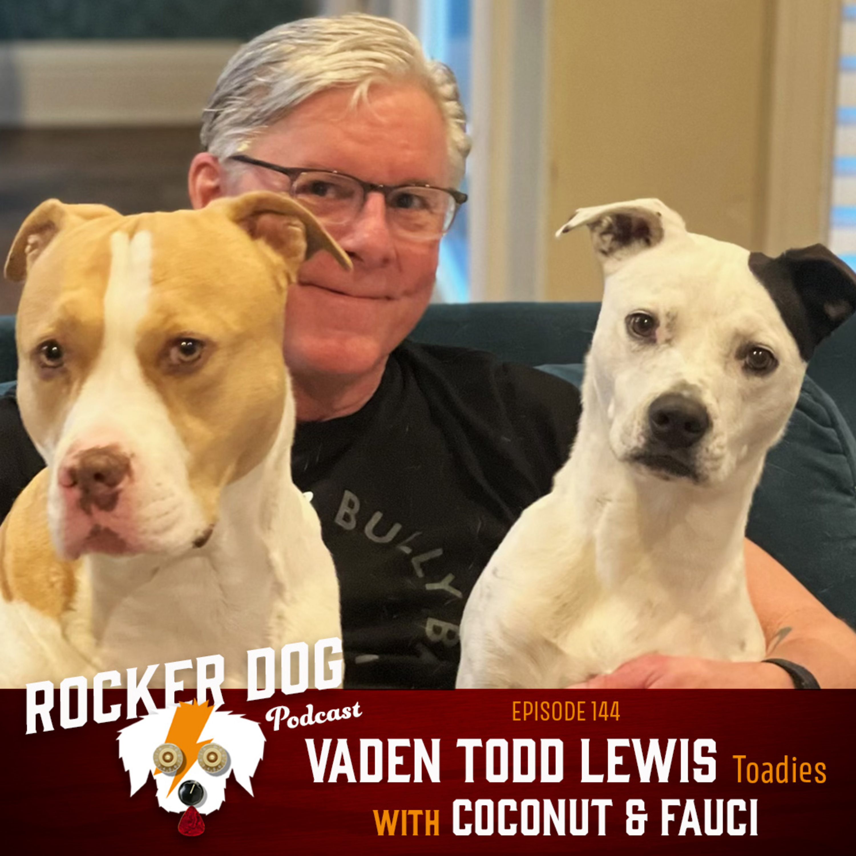 This week we're talking dogs with Vaden Todd Lewis of the Texas rock stalwarts the Toadies whose song Possum Kingdom from their platinum debut album Rubberneck has been an alternative radio staple for the last 30 years. Vaden introduces us to his Pit Bulls Fauci and Coconut while paying tribute to his past dog Cooper, a tripod terrier mix, and Rufus, a Aussie Heeler. Great talk about overcoming the stigma of pit bulls, the benefits of adopting from a shelter and much more.