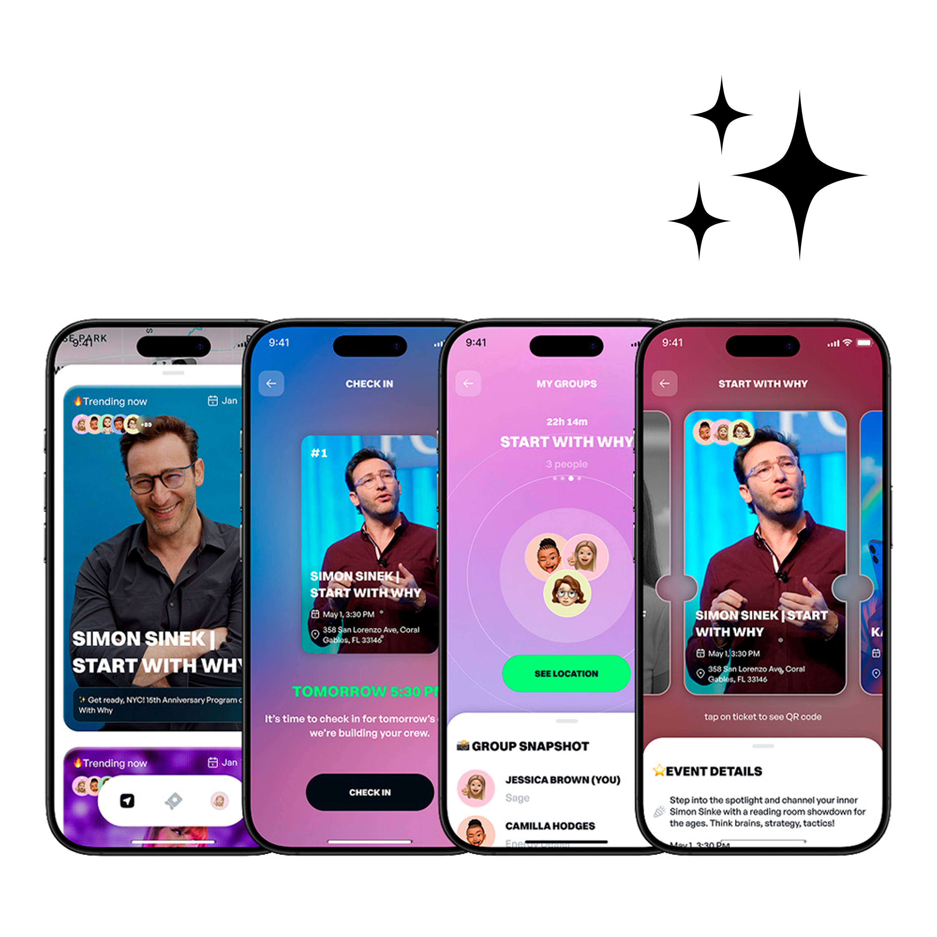 A aplicação reúne num só lugar a descoberta de eventos, sugestões de novas ligações e ferramentas que facilitam o convívio.