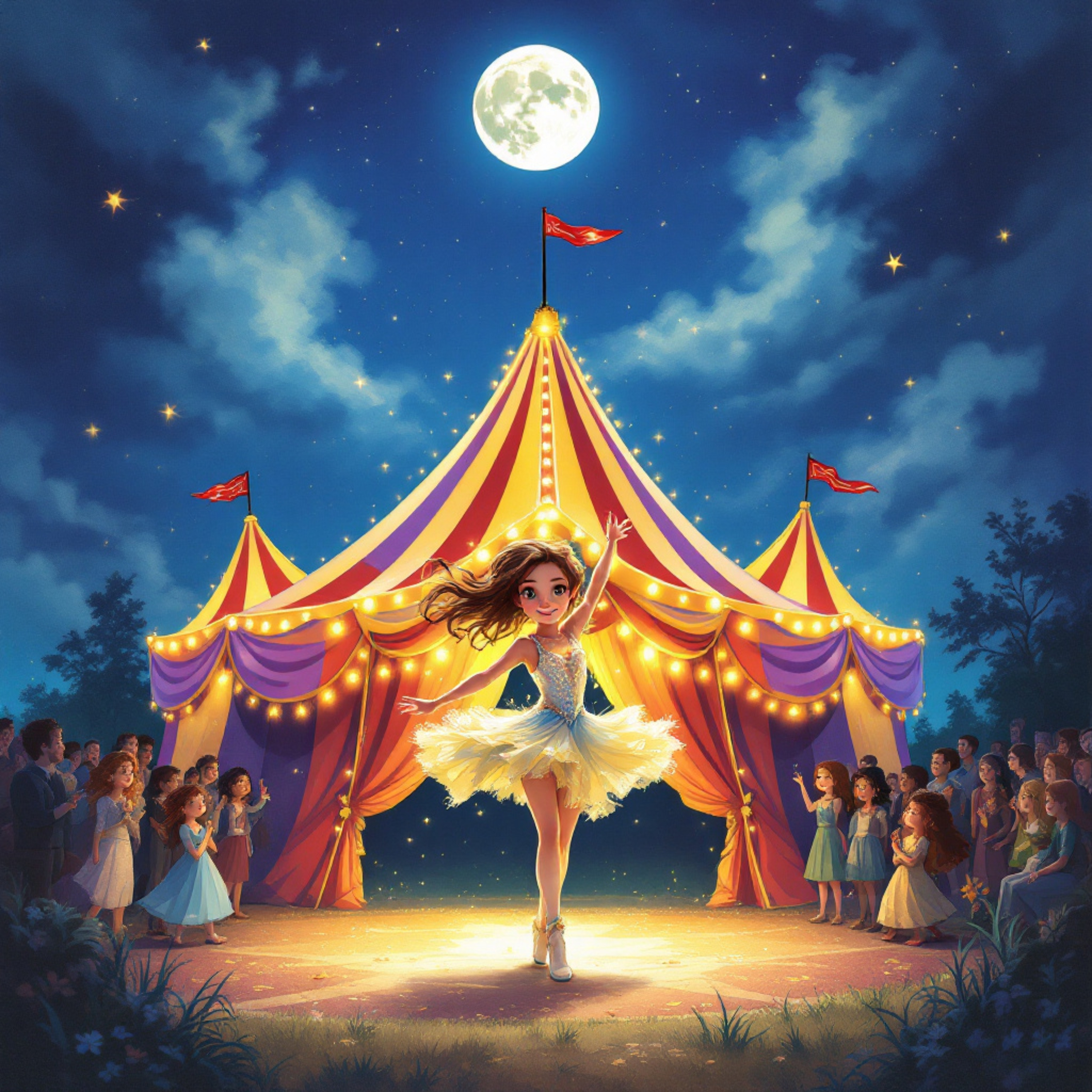 In "The Moonlight Circus," a timid young girl named Lily discovers her hidden talents with the help of a wise old ringmaster. Under the magical glow of the full moon, Lily learns to believe in herself and finds the confidence to shine on stage. The story teaches children the importance of self-belief and the power of encouragement in discovering one's true potential.