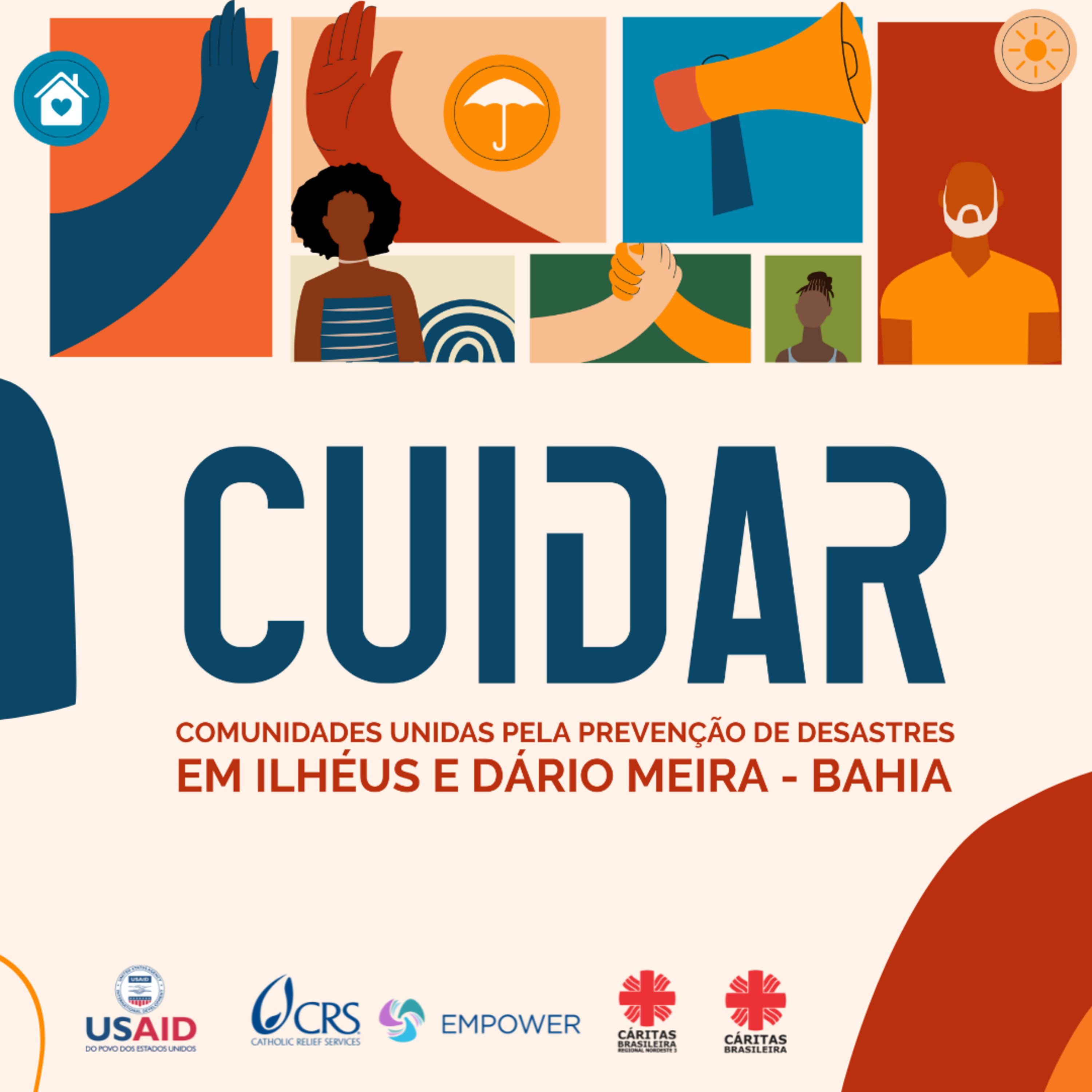 A rede Cáritas Brasileira desenvolve na Bahia o projeto “CUIDAR: Comunidades Unidas pela Prevenção de Desastres em Ilhéus e Dário Meira.” Essa ação promove a organização coletiva, nas duas comunidades que foram atingidas pelas chuvas no final de 2021 e início de 2022.