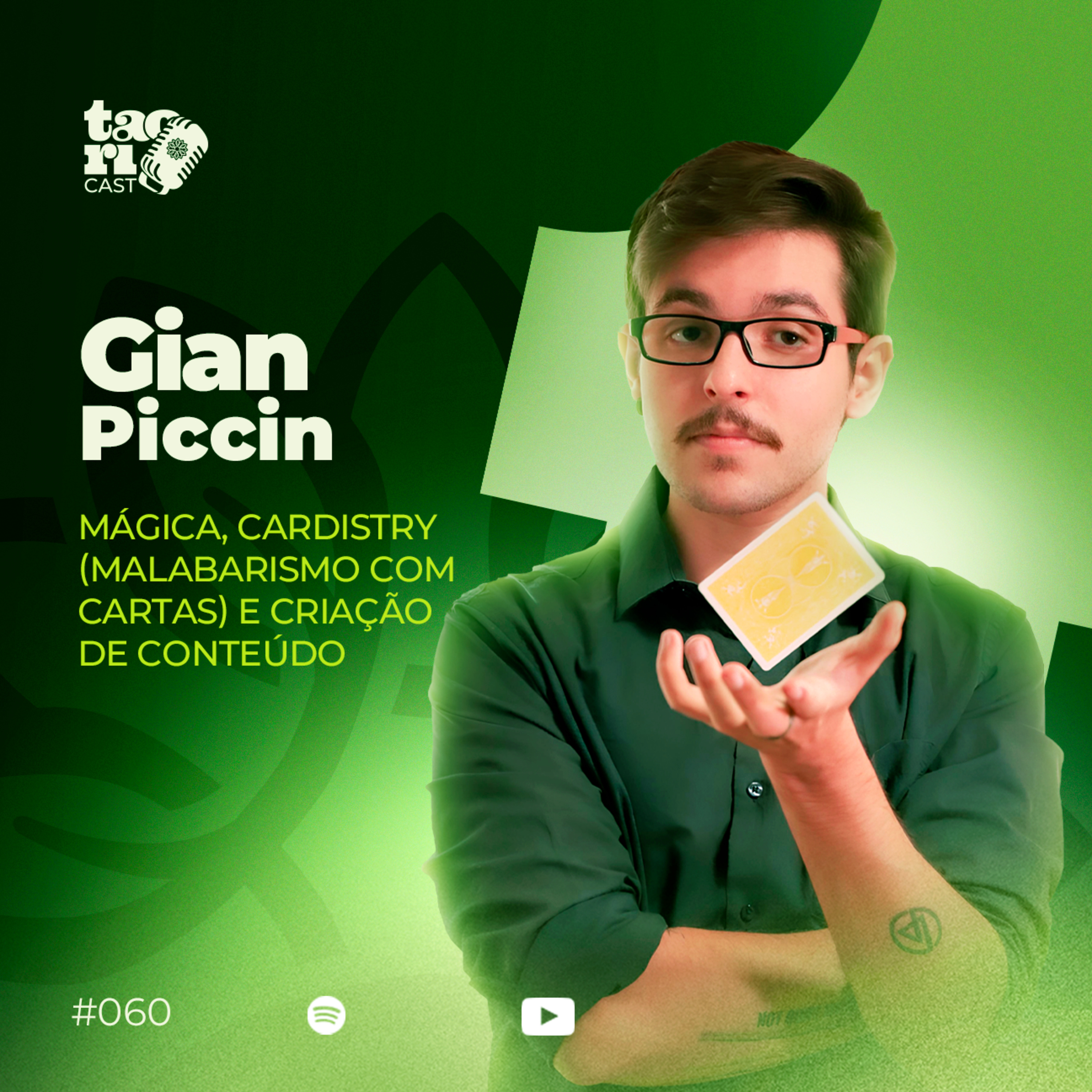 No 60º episódio do Taoricast, recebemos o mágico @gian.piccin um jovem talento que transformou sua paixão por truques de baralho em um verdadeiro espetáculo. Com mais de 450 mil seguidores no YouTube e 330 mil no TikTok, Gianluca compartilha suas histórias, fala sobre sua impressionante coleção de baralhos, explica o que é cardistry e revela como sua família foi sua maior inspiração para seguir essa jornada.