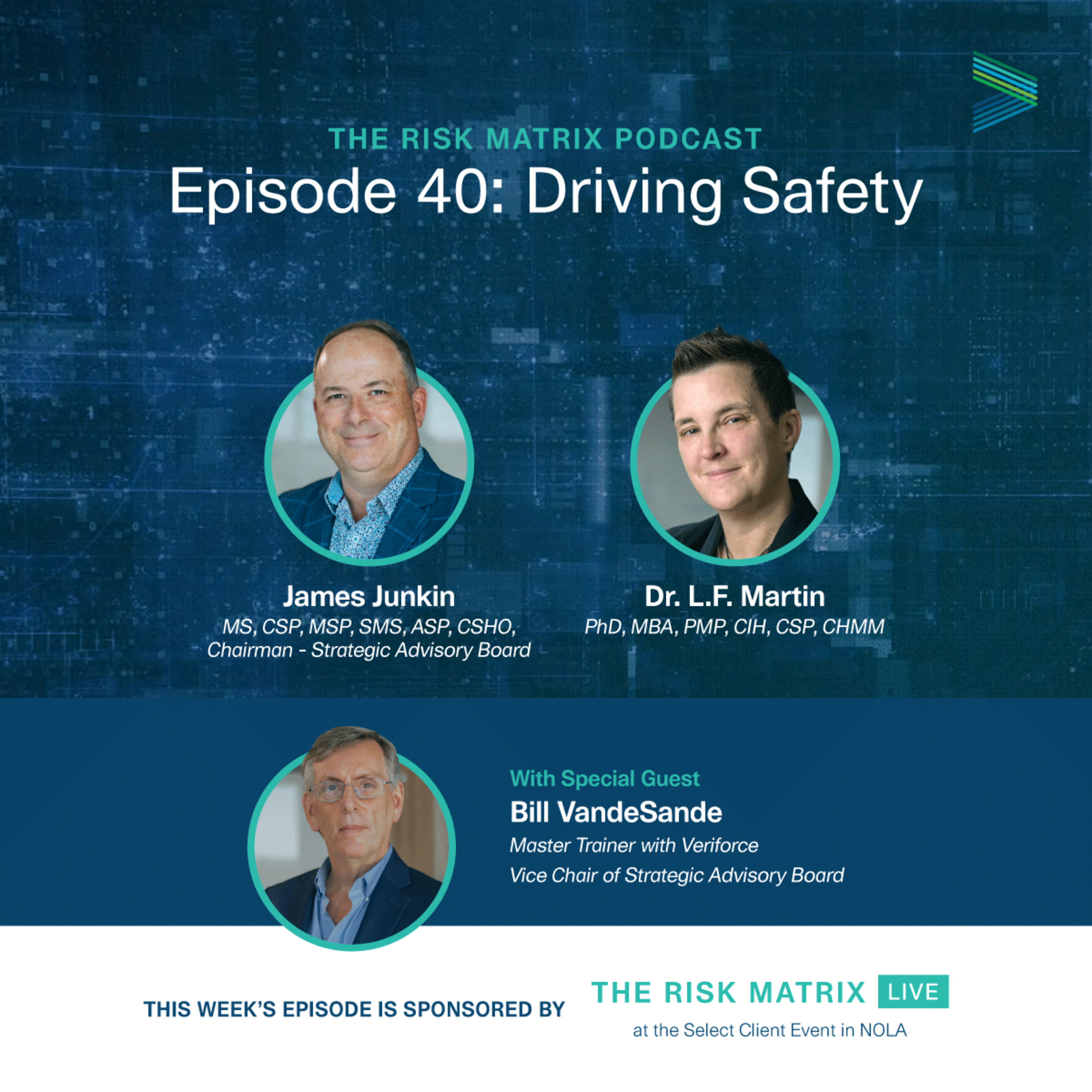 The Risk Matrix is your premier destination for insightful discussions on risk management and health and safety, with captivating topics, insightful strategies, and more. Hosted by James Junkin MS, CSP, MSP, SMS, ASP, CSHO Chief Executive Officer at Mariner-Gulf Consulting & Services, Veriforce Master Trainer, and Chairman of the Veriforce Strategic Advisory Board and Dr. L.F. Martin, PhD, MBA, PMP, CIH, CSP, a Technical Expert in Health and Safety, Industrial Hygiene, Risk, Auditing/Inspection, and ESG.