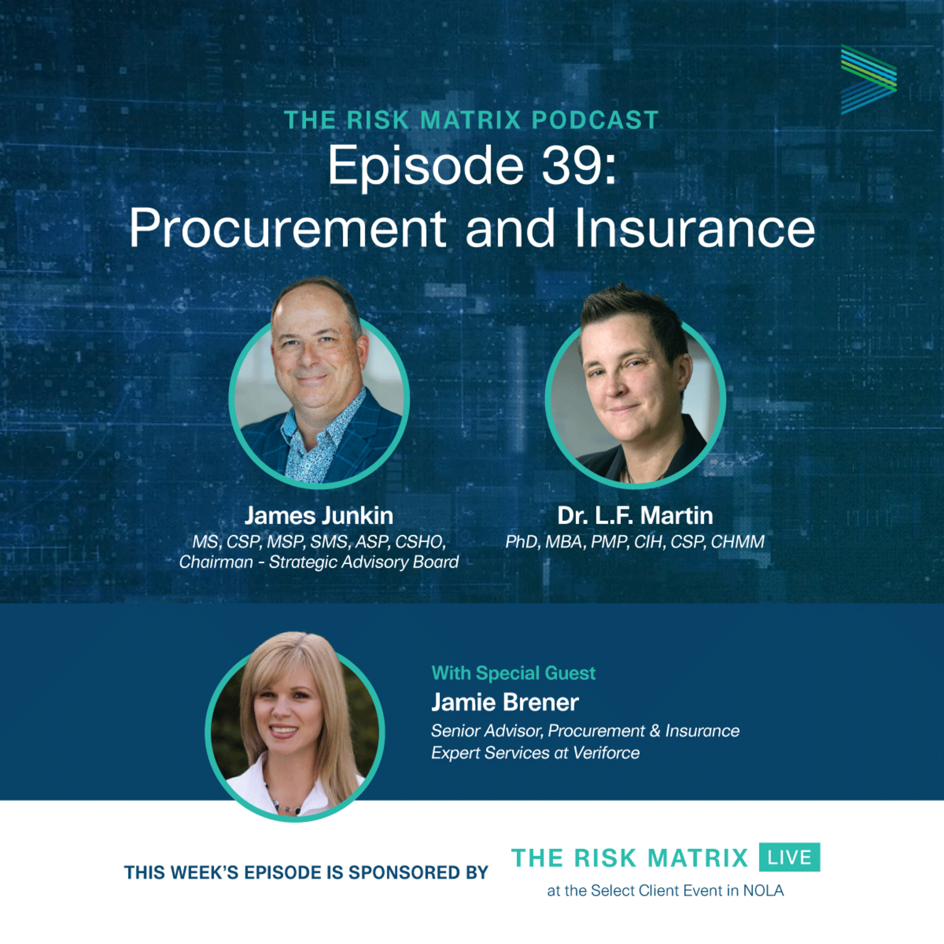 The Risk Matrix is your premier destination for insightful discussions on risk management and health and safety, with captivating topics, insightful strategies, and more. Hosted by James Junkin MS, CSP, MSP, SMS, ASP, CSHO Chief Executive Officer at Mariner-Gulf Consulting & Services, Veriforce Master Trainer, and Chairman of the Veriforce Strategic Advisory Board and Dr. L.F. Martin, PhD, MBA, PMP, CIH, CSP, a Technical Expert in Health and Safety, Industrial Hygiene, Risk, Auditing/Inspection, and ESG.