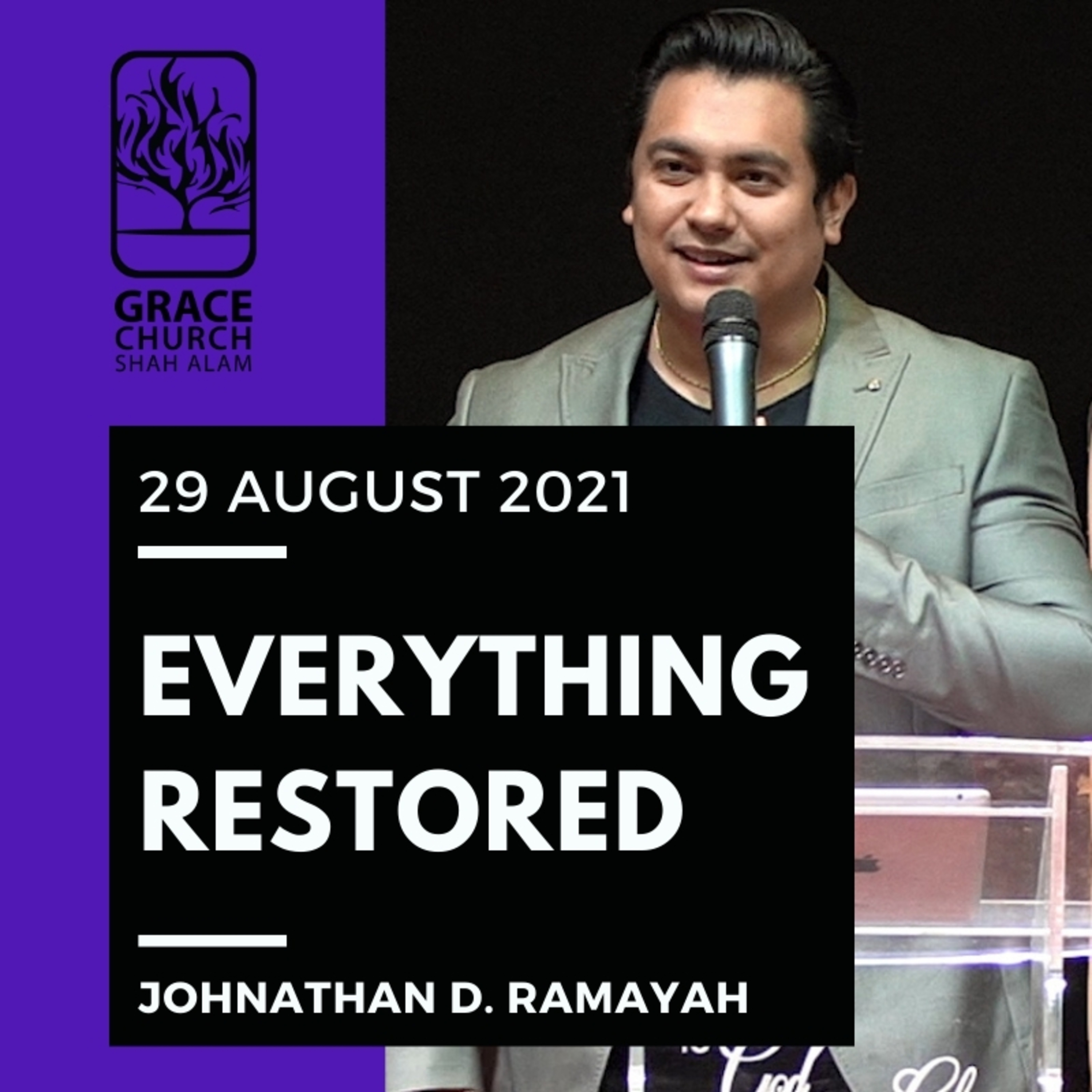 Bro. Johnathan is reminding us that God provides and that He can restore everything the enemy has stolen. Date: 29 August 2021 Speaker: Johnathan D. Ramayah Title: "EVERYTHING RESTORED" ​Text: 1 Sam 30