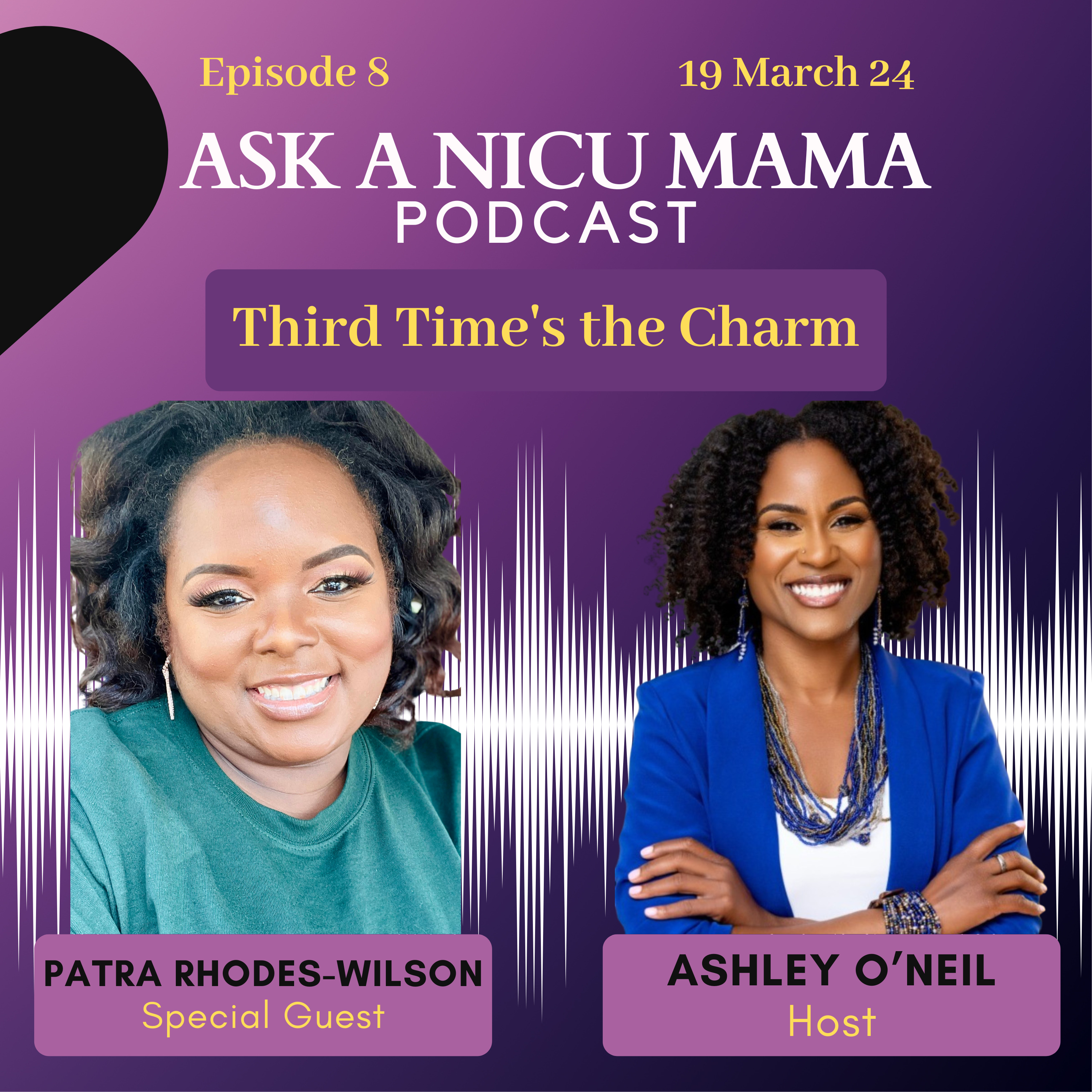 In this episode titled "Third Time's a Charm," my first podcast guest, Patra Rhodes-Wilson, joins me. We delve into the experiences of being a NICU mother to multiple children, the importance of mental health care, prioritizing self-care, and many other topics. Patra shares words of encouragement for both current and past NICU mothers. If you can't listen to it all at once, bookmark it and pick up where you left off later. Trust me, this episode is not to be missed.
