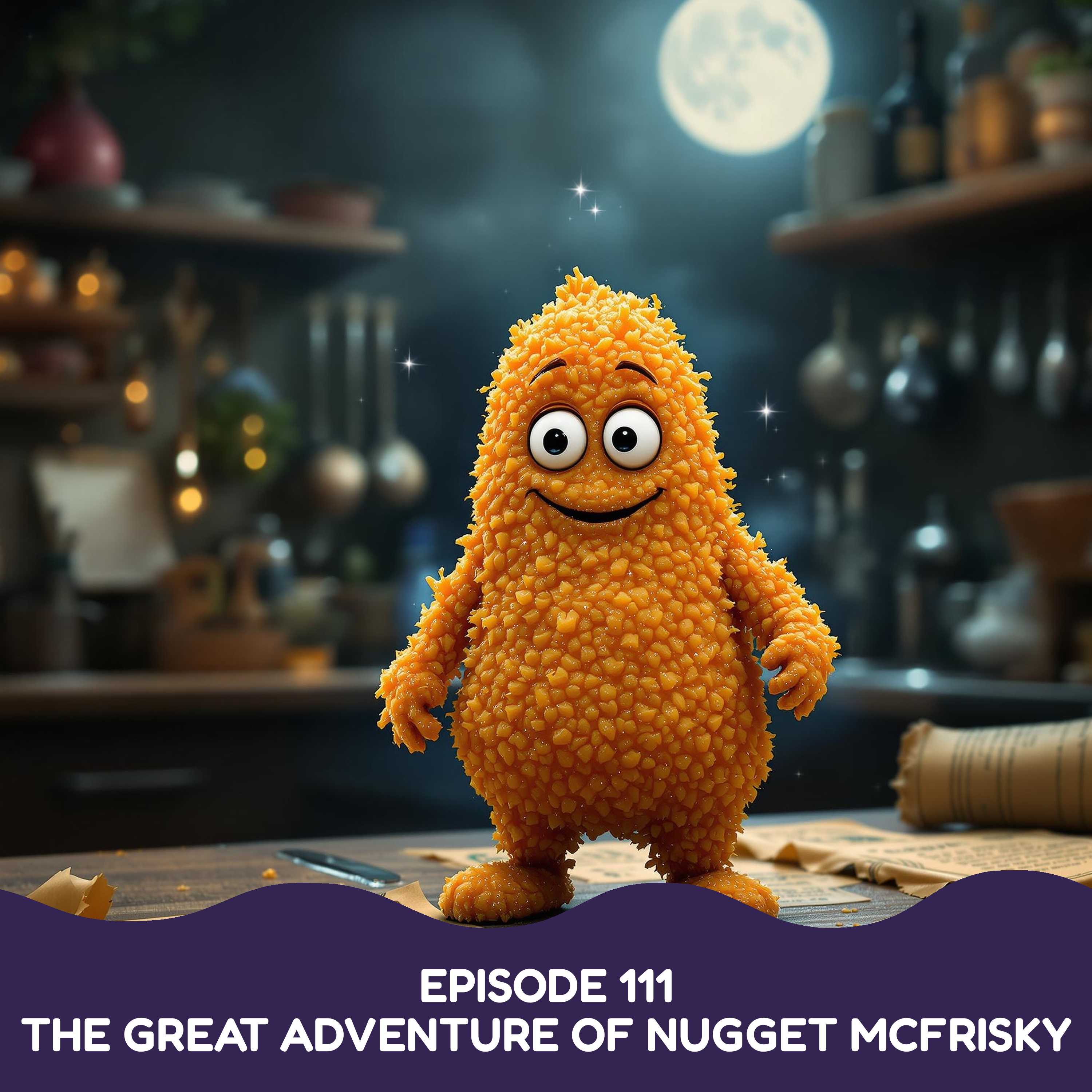 Nugget McFrisky isn’t your ordinary chicken nugget—he’s a brave little bite with a breadcrumb heart full of courage! When Nugget discovers a treasure map in Granny Pepperworth’s quiet kitchen, he sets off on a rolling quest through bubbling sinks, icy freezers, sunny windowsills, and dusty basements. But the real treasure he finds isn’t gold—it’s something even more magical, and it just might change the whole restaurant forever.
