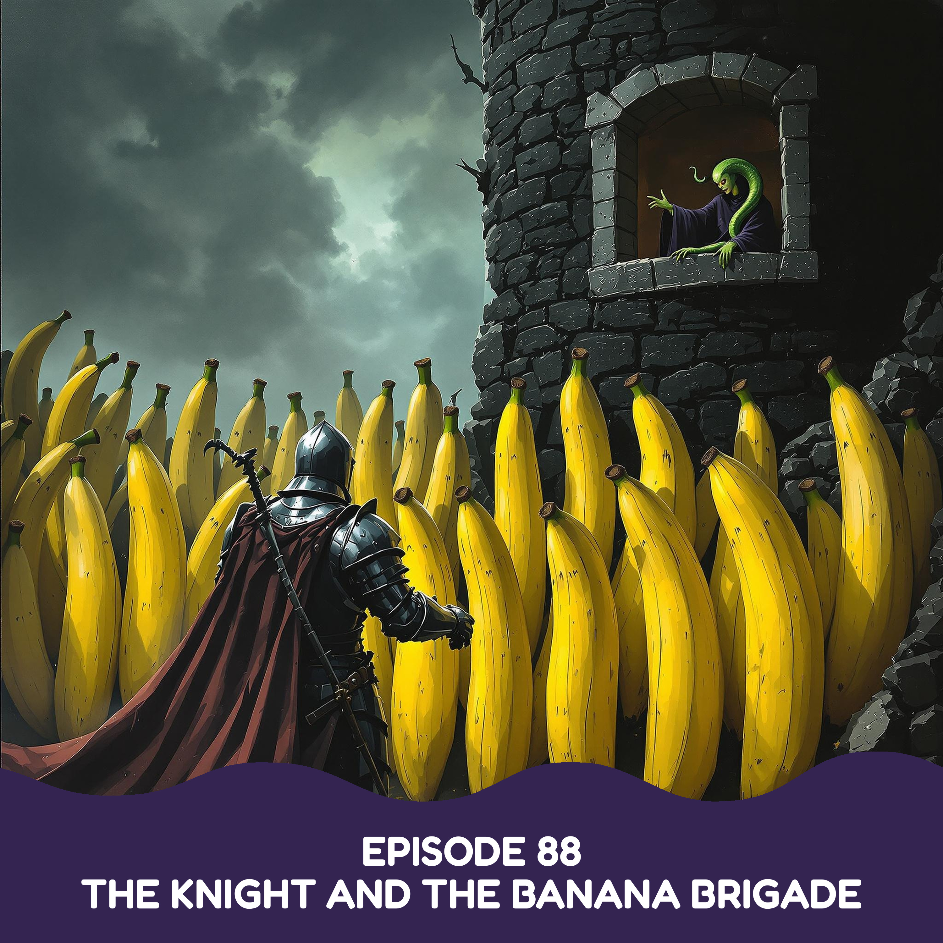 Tonight’s adventure is called "The Knight and the Banana Brigade" — a thrilling tale about Sir Rueben the Valiant, a fearless knight who must rescue the kind Princess Eliza from the clutches of the wicked Witch of Whispering Woods — and defeat her not-so-ordinary army of enchanted bananas!