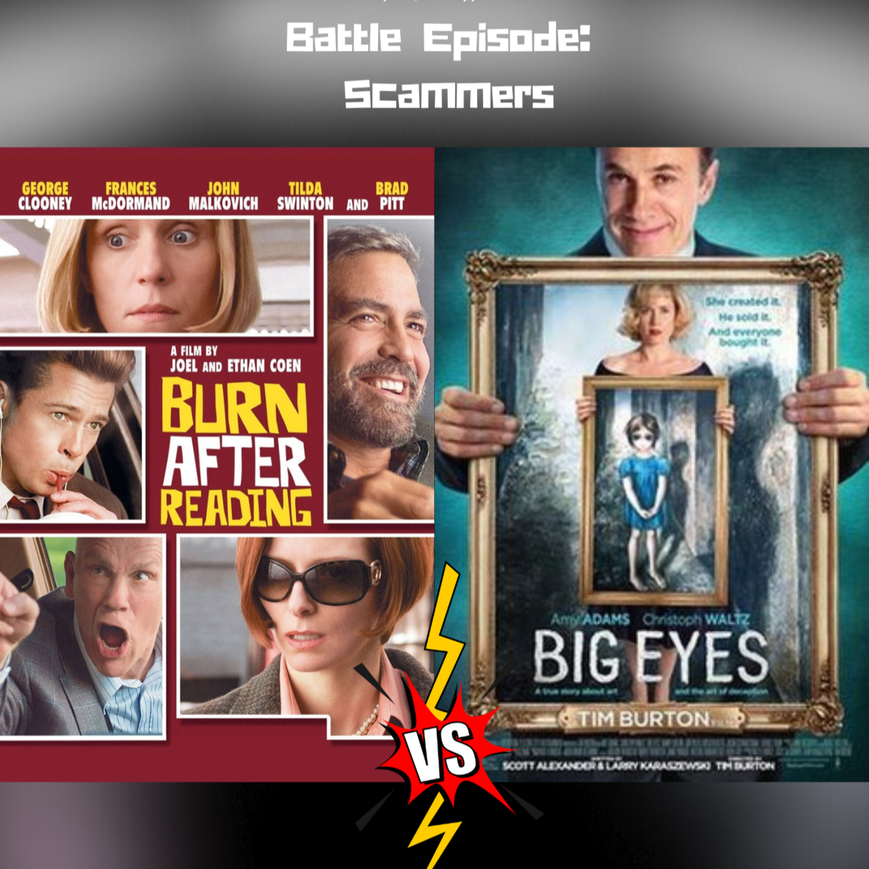 The category is "Scammers" as two films go head to head for a spot on the Greatest Films of The 21st Century List. First up is the Coen Brother's goof ball caper "Burn After Reading". It gave us plenty to chat about including a surprisingly wacky performance by Brad Pitt. Then it's Tim Burton's " Big Eyes". A bio-pic of sorts about a character whose art and identity has been stolen in a most unexpected way. We had a great time recording so enjoy. We do not suggest listening to this episode hiding in a closet with no I.D. or tags on your clothing. Trust us and remember to rate/review!