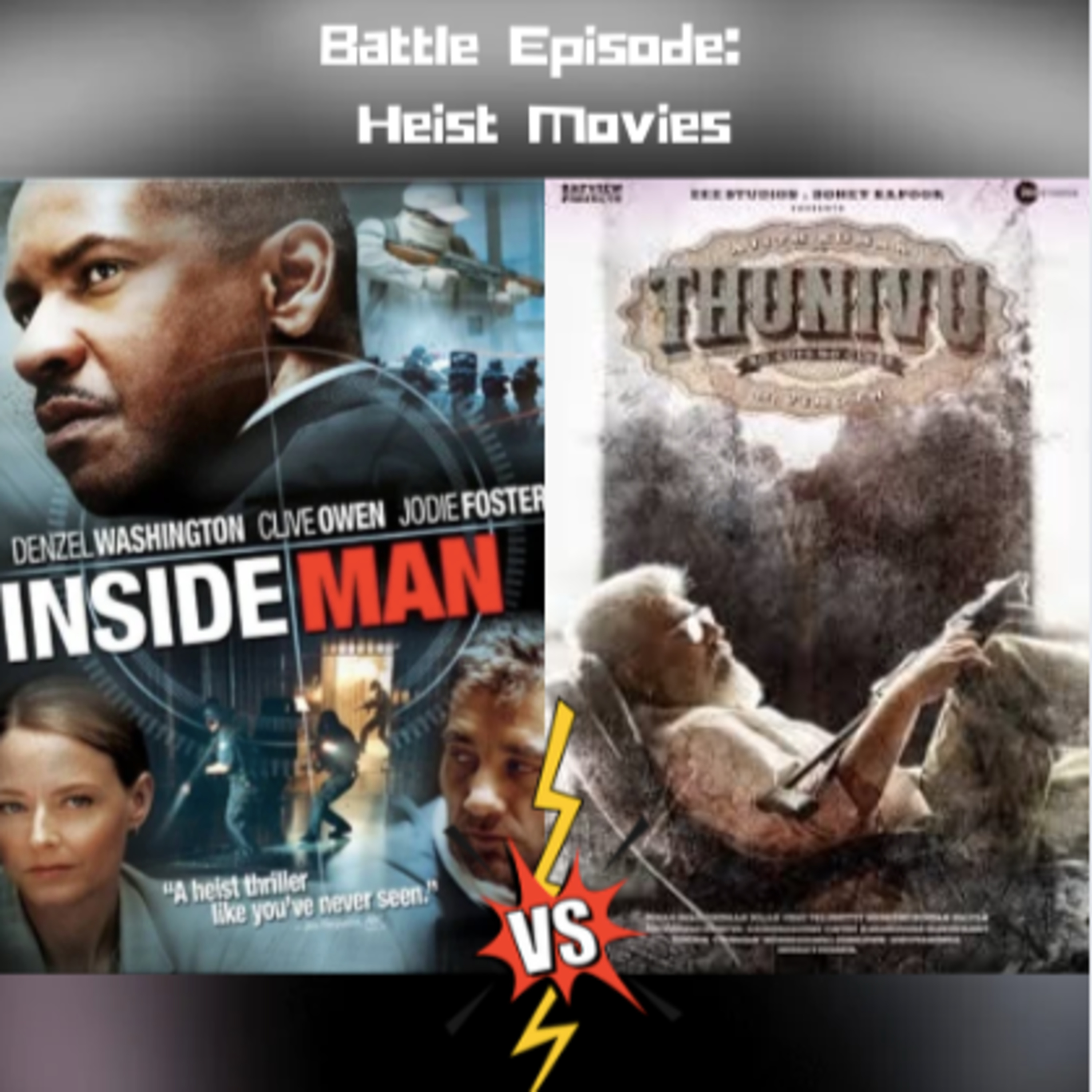 The category is "Heist Movies". Join us as two films go head to head and possibly earn a spot on our Greatest Films of the 21 Century List. First we tackle 'Inside Man' the Spike Lee joint from 2006. With Denzel Washington , Clive Owen, Jodie Foster, Christopher Plummer and Willem Dafoe going toe to toe in a taut thrill ride. Then it's 'Thunivu' from 2023. A Bollywood style action film with plenty of twists and turns. So break on in to this episode and make sure you bring the get away car. Both movies are currently available on Netflix. Remember to Rate, Review, Subscribe and Follow!