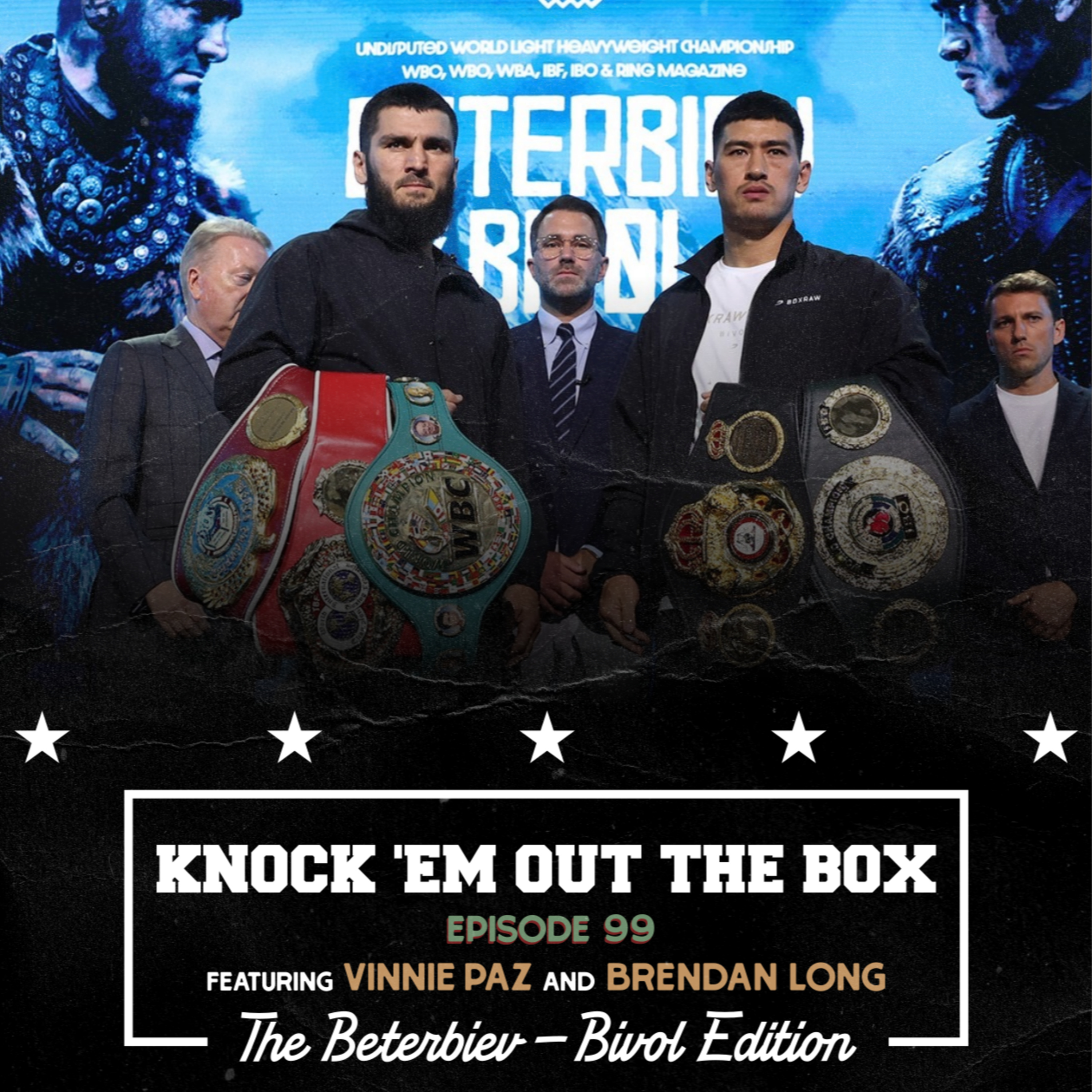 With B on (another) vacation, and Irish Billy drinking his Phillies sorrows away, Vinnie goes for dolo to discuss the upcoming Artur Beterbiev - Dmitry Bivol scrap for light heaveyweight supremacy. Also discussed are last week's Janibek Alimkhanuly and Nick Ball tilts. Will The Great Pazzini aka Tony Tarot pull another rabbit out of his hat, or will he come up snake eyes? Join Pazzy on a solo mission on this week's Knock 'Em Out the Box.