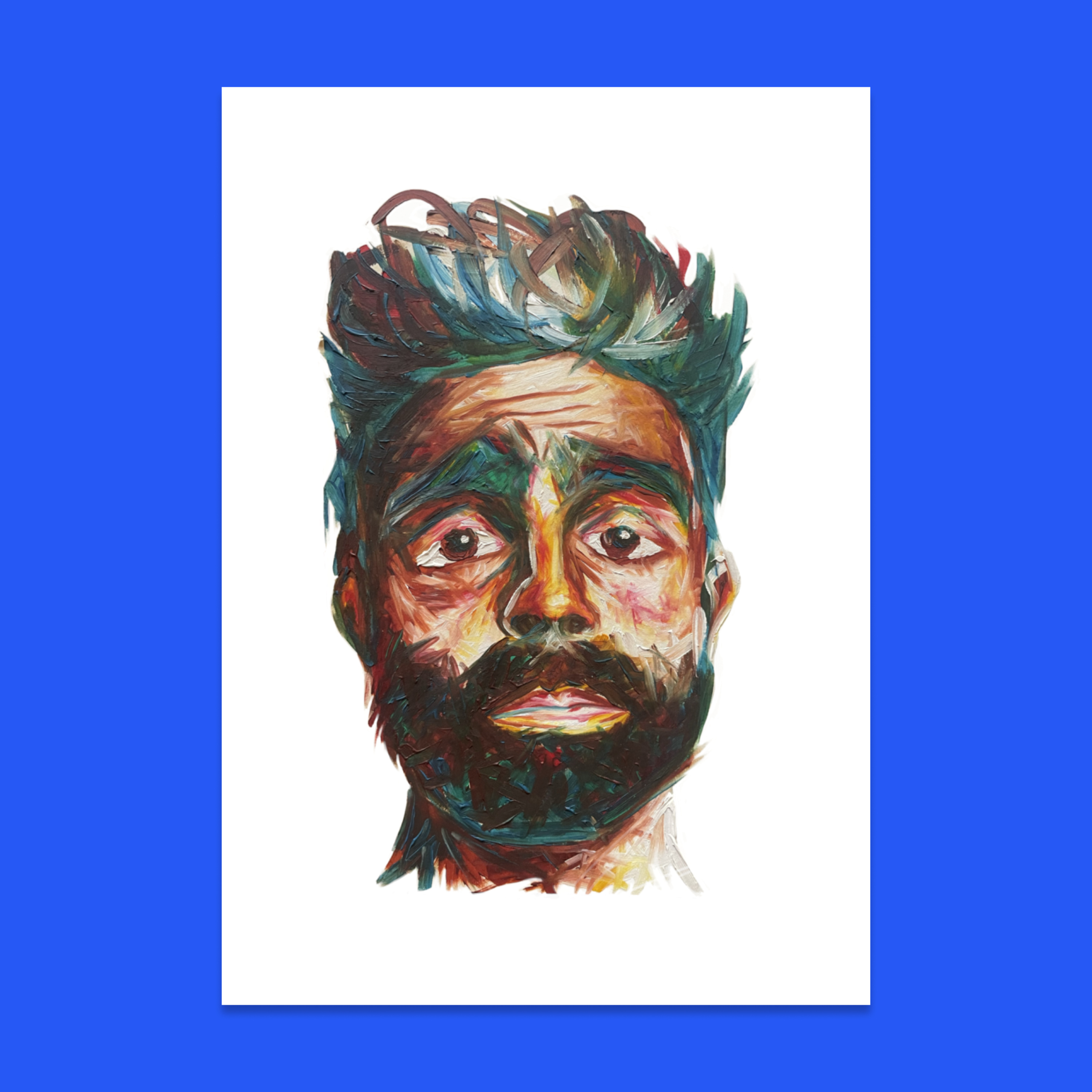 I had just moved to Brighton in 2021. I wanted to create a portrait like I did as a kid. I picked up the same 6 colours I used to use. I painted a self-portrait. Feeling it said more than I could say with words