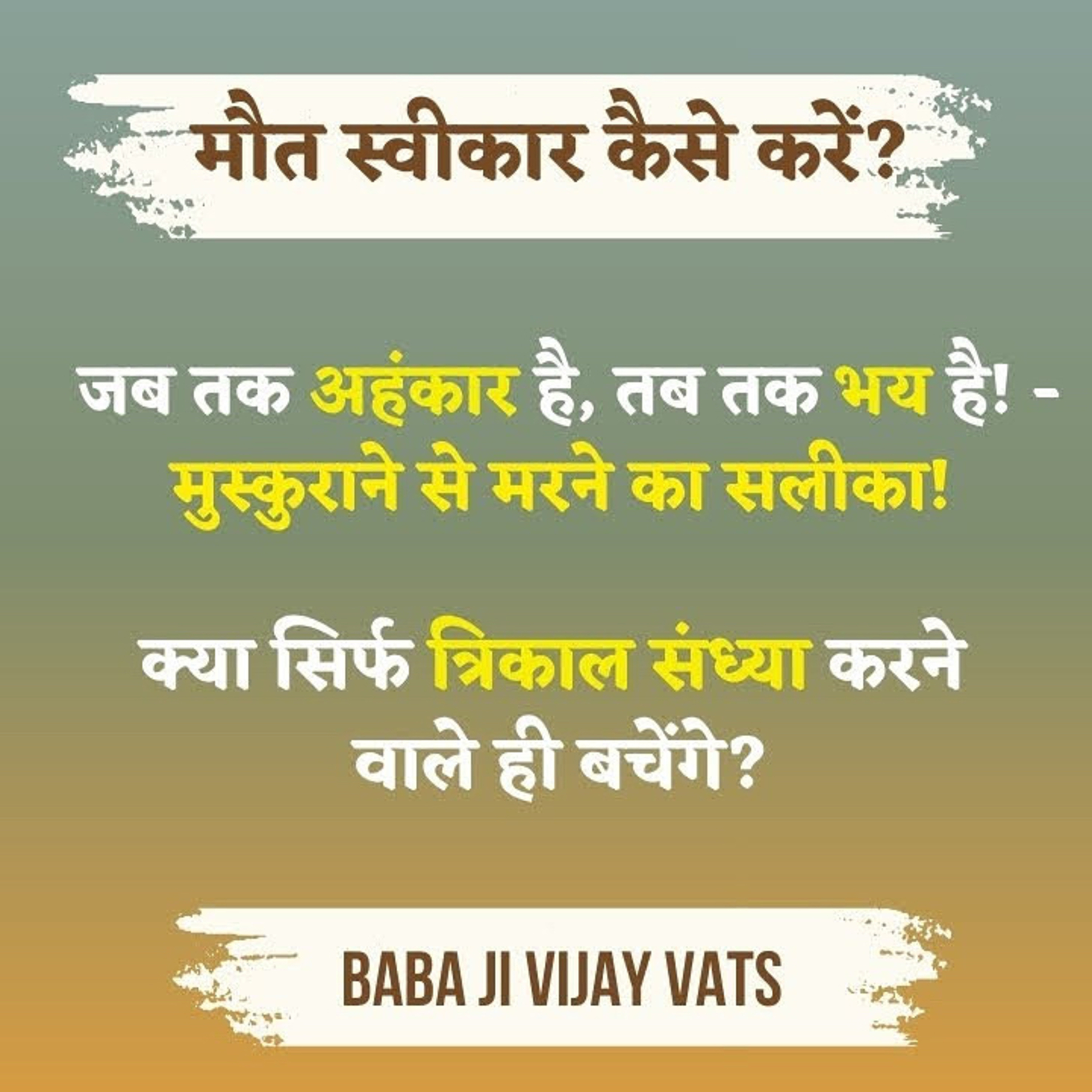 19 Aug 25 - मौत स्वीकार कैसे करें? जब तक अहंकार है, तब तक भय है! - मुस्कुराने से मरने का सलीका! Baba Ji Vijay Vats Satsang