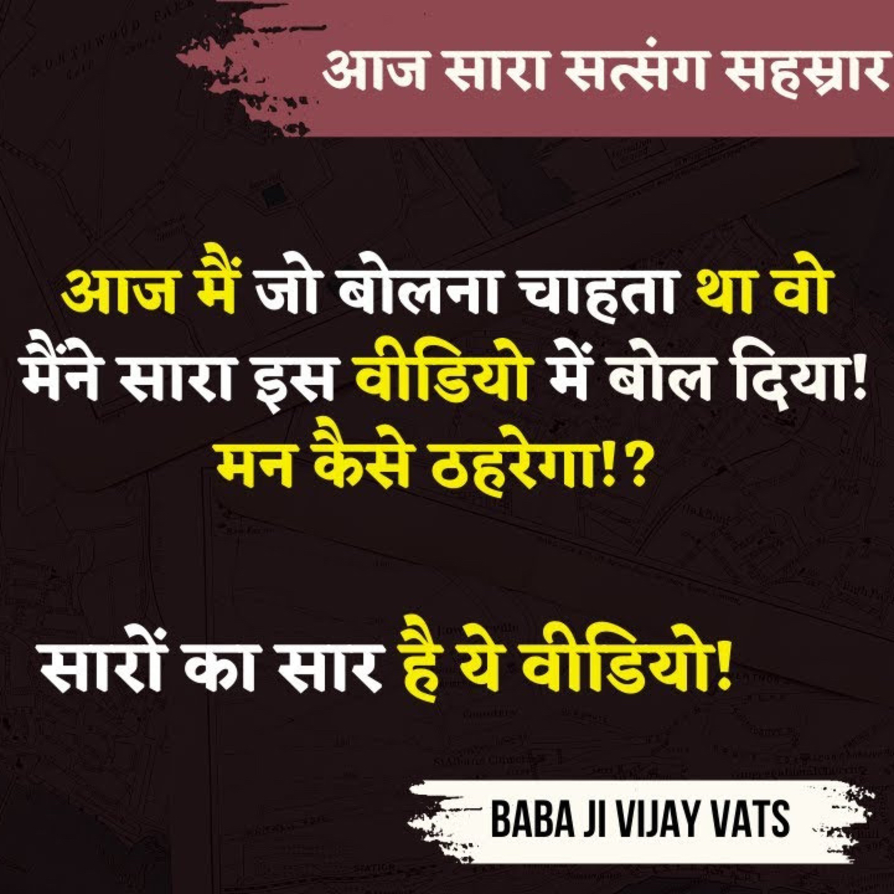 6 Apr 25 - आज मैं जो बोलना चाहता था वो मैंने इस वीडियो में बोल दिया! मन कैसे ठहरेगा!? सारों का सार। Satsang by Baba Ji Vijay Vats