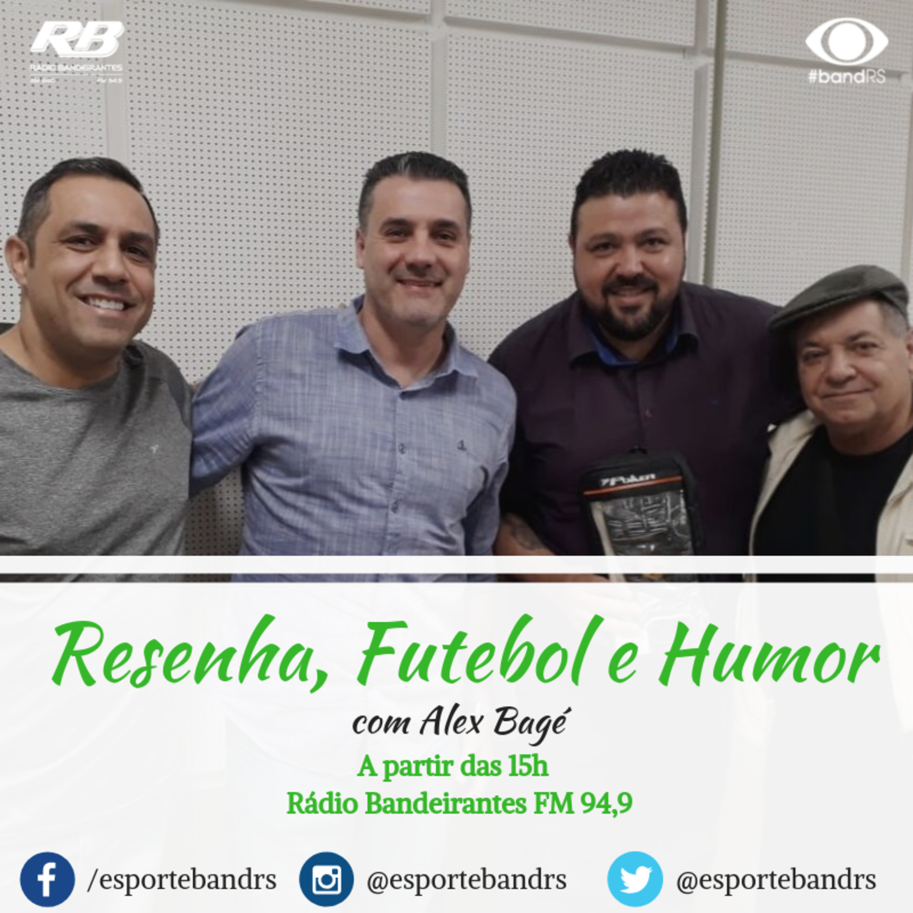 A hora do café ou do chimarrão de domingo nunca mais será a mesma" - Essa é a frase que define o que o programa busca trazer ao ouvinte. Comandado pelo jornalista Alex Bagé, o Resenha, Futebol e Humor chega pra fazer diferente! Com personalidades do esporte abordando histórias engraçadas e pouco conhecidas dos ouvintes, o Resenha chega para animar o dia de quem acompanha. Além disso, personalidades de fora do mundo esportivo participam, contribuindo, assim, para o lema do programa: Esporte com humor! ParticipaM do programa: André Damasceno, Marcelo Mabília e Carlos Wamburg