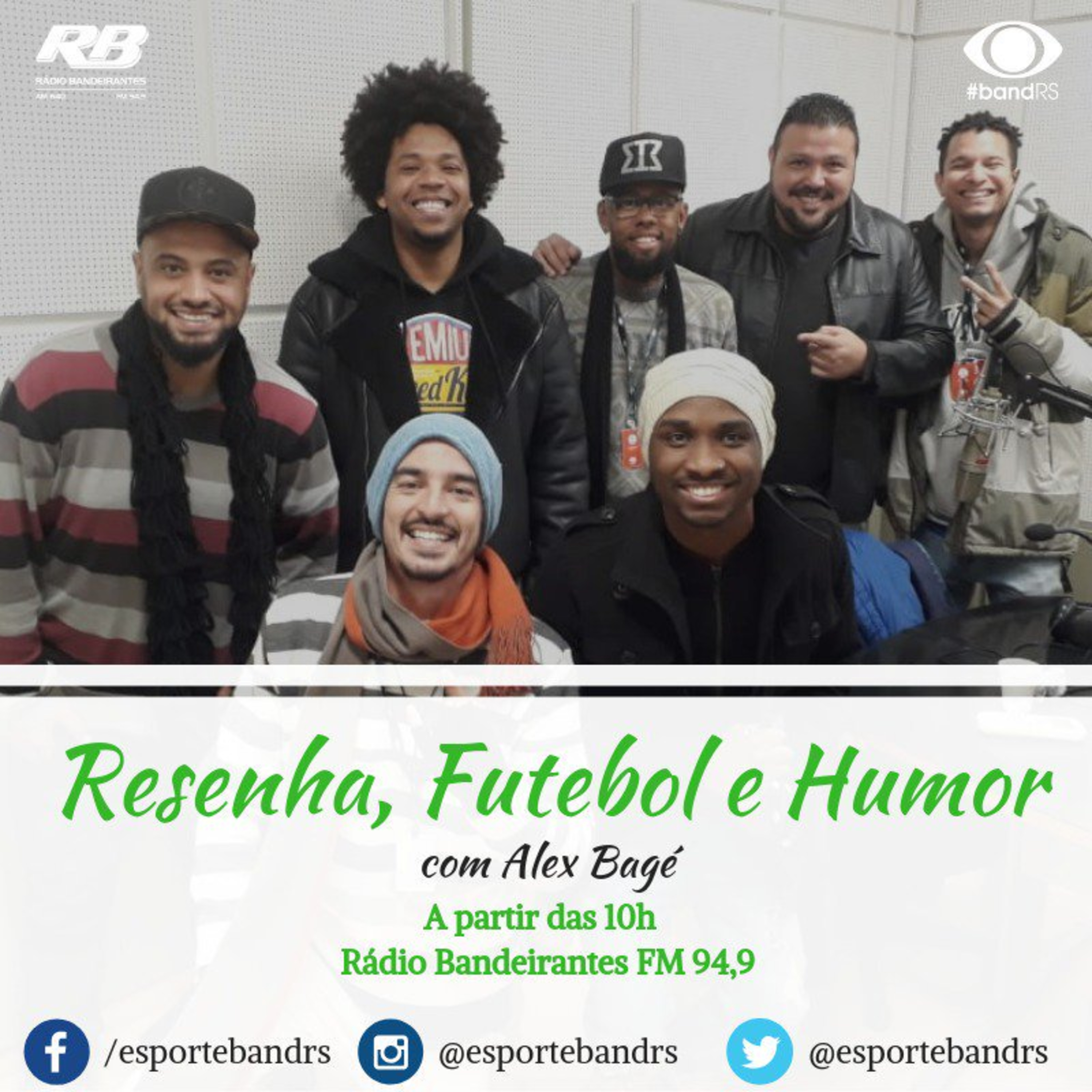 A hora do café ou do chimarrão de domingo nunca mais será a mesma" - Essa é a frase que define o que o programa busca trazer ao ouvinte. Comandado pelo jornalista Alex Bagé, o Resenha, Futebol e Humor chega pra fazer diferente! Com personalidades do esporte abordando histórias engraçadas e pouco conhecidas dos ouvintes, o Resenha chega para animar o dia de quem acompanha. Além disso, personalidades de fora do mundo esportivo participam, contribuindo, assim, para o lema do programa: Esporte com humor! Participam do programa: Grupo Zueira, banda musical e o comediante Rafael Ritta