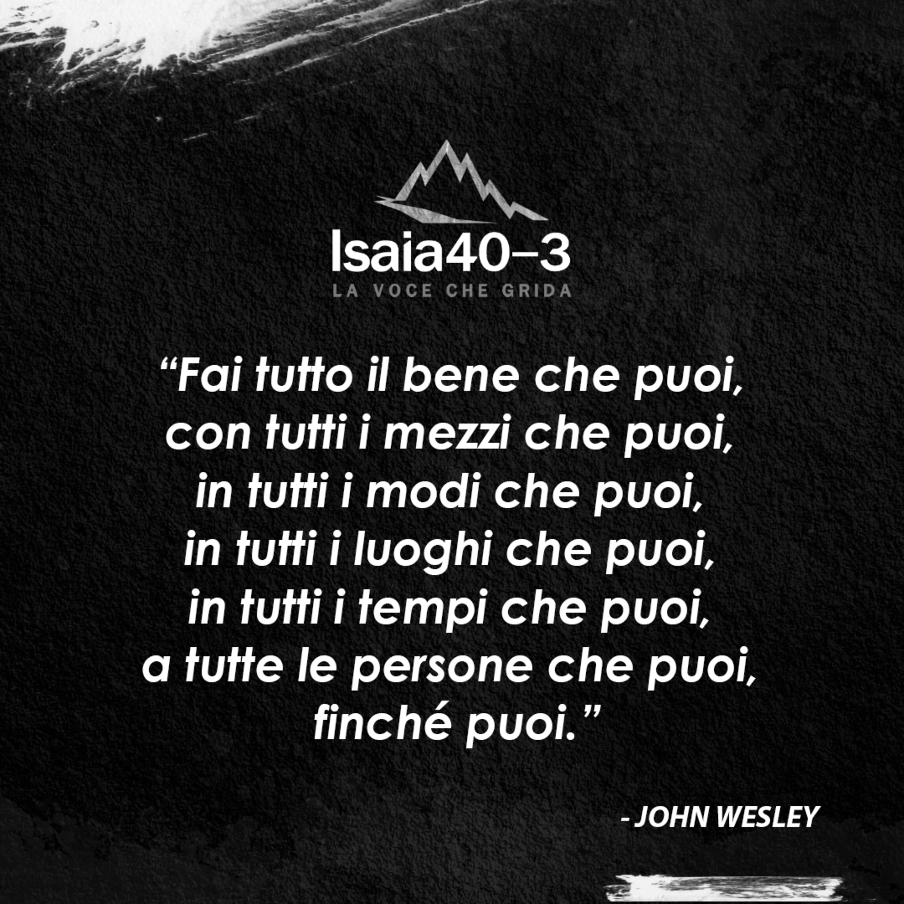 Questa famosa frase di John Wesley, teologo e fondatore del Metodismo, รจ un potente invito all'azione e alla compassione. Ci incoraggia a fare del bene nel mondo, utilizzando ogni mezzo a nostra disposizione e aiutando chiunque ne abbia bisogno, sempre e ovunque.