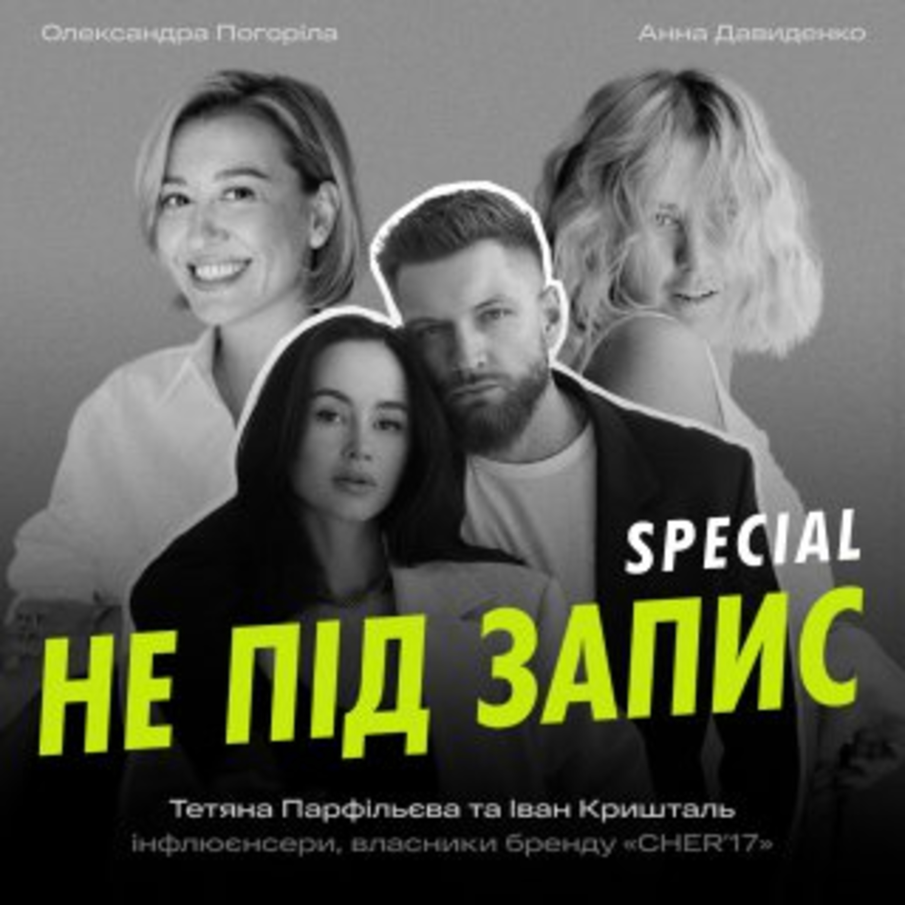 Ви слухаєте spesial до першого сезону подкасту «Не під запис». Цей випуск ми писали офлайн з Іваном Криштальом і Тетяною Парфільєвою співвласниками CHER’17. Ведучі — Анна Давиденко, PR-агентка і celebrity marketing менеджерка та Олександра Погоріла, засновниця агенції стратегічних комунікацій UAGENCY. У цьому випуску не під запис обговорювали: