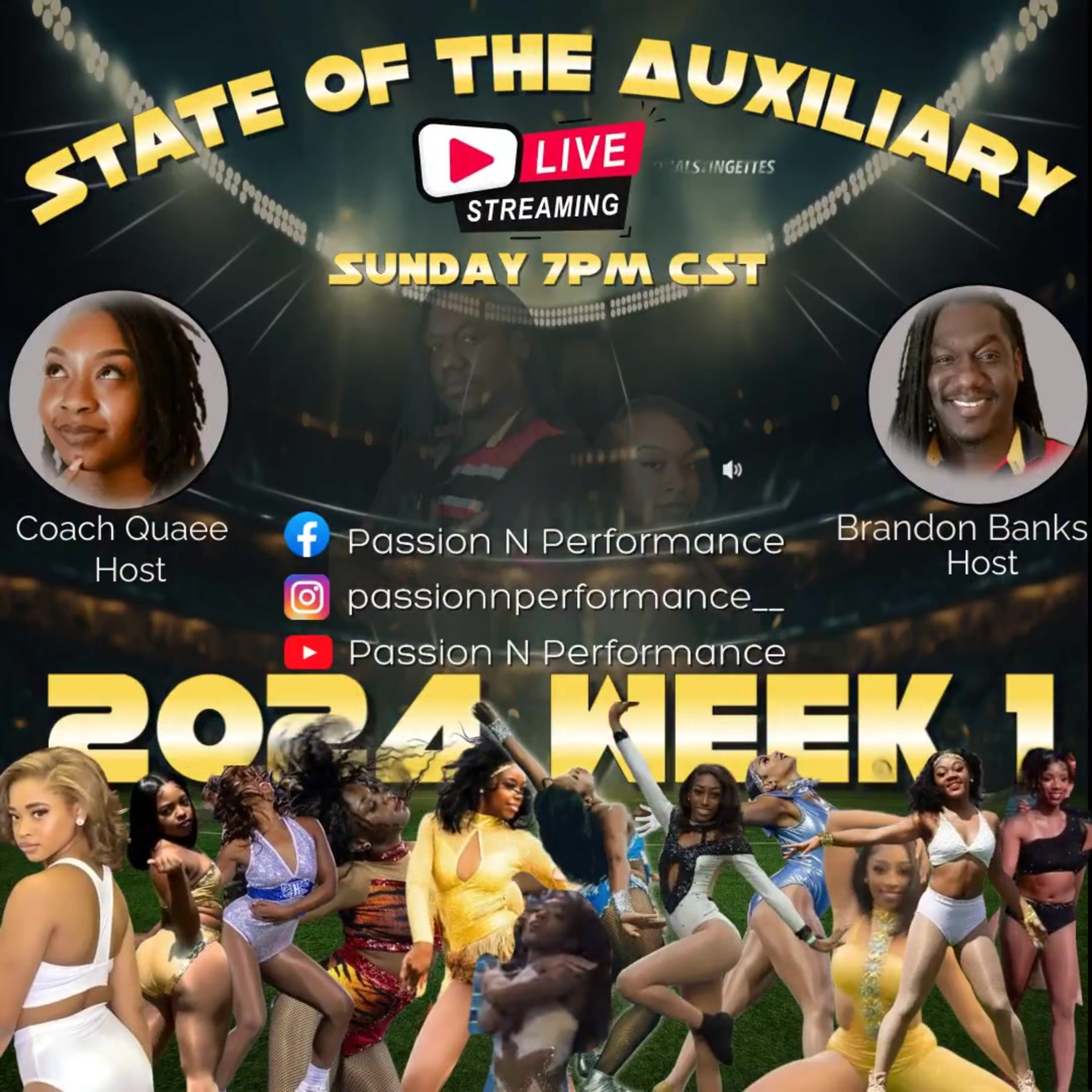 Want to create live streams like this? Check out StreamYard: https://streamyard.com/pal/d/61081920.#stateoftheauxiliary #passionnperformance #majorette #dance #colorguard #twirlers #marchingbands #hbcubands #NBOTB