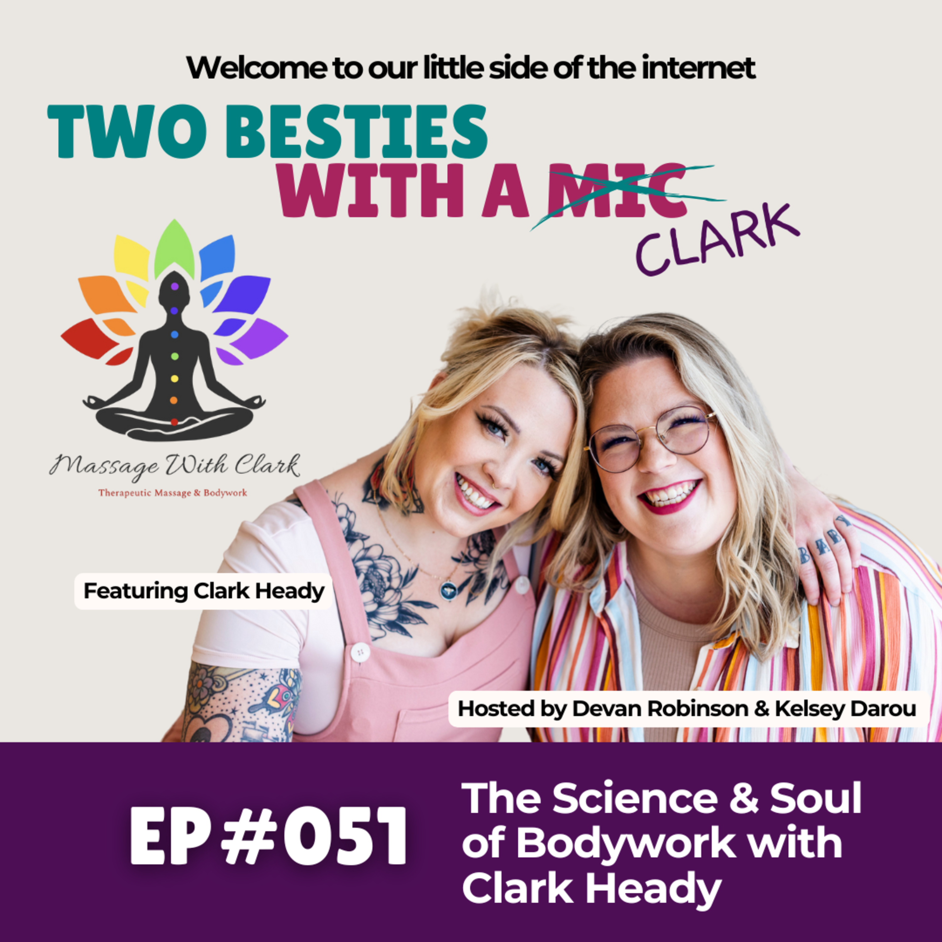 This week, the Besties sit down with Clark Heady, a massage therapist and our personal encyclopedia of bodywork. Clark brings a blend of science, intuition, and real-life experience that makes you rethink everything you thought you knew about your body. From how fascia actually works, to why our daily habits shape the way we feel, to living in a small town with two very opinionated chihuahuas, Clark shares his journey with honesty, humor, and the kind of depth that makes you feel seen and understood.
