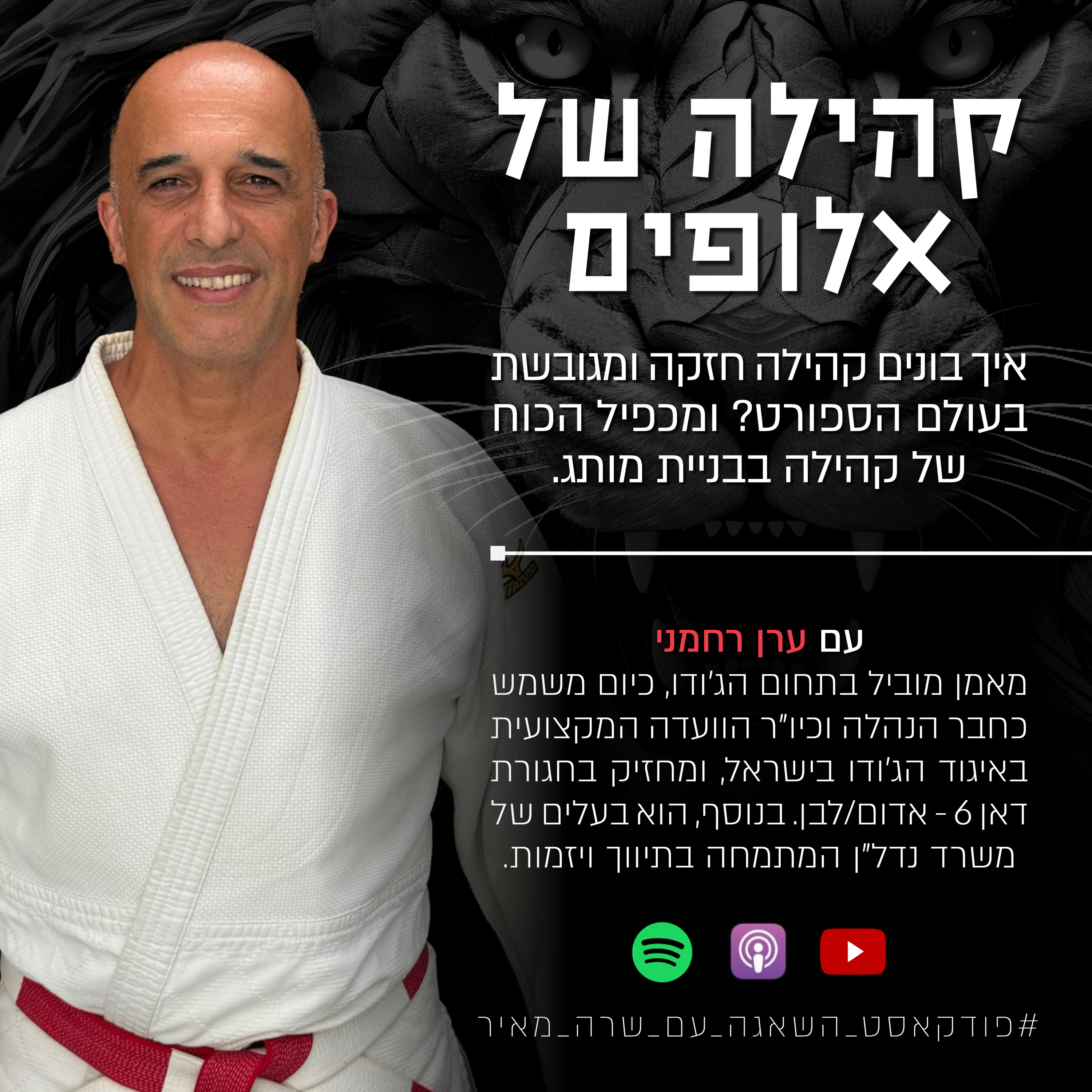 בפרק אני מראיינת את ערן רחמני, מאמן מוביל בתחום הג'ודו, החל את דרכו בעולם הספורט התחרותי כבר מילדות. כיום משמש כחבר הנהלה וכיו"ר הוועדה המקצועית באיגוד הג'ודו בישראל, ומחזיק בחגורת דאן 6 - אדום/לבן. ערן משתתף ומעורב בכנסים ופאנלים בינלאומיים, ותרומתו המקצועית וההשפעה הרחבה שלו מעידות על מצוינותו בתחום. בנוסף, הוא בעלים של משרד נדל"ן המתמחה בתיווך ויזמות.