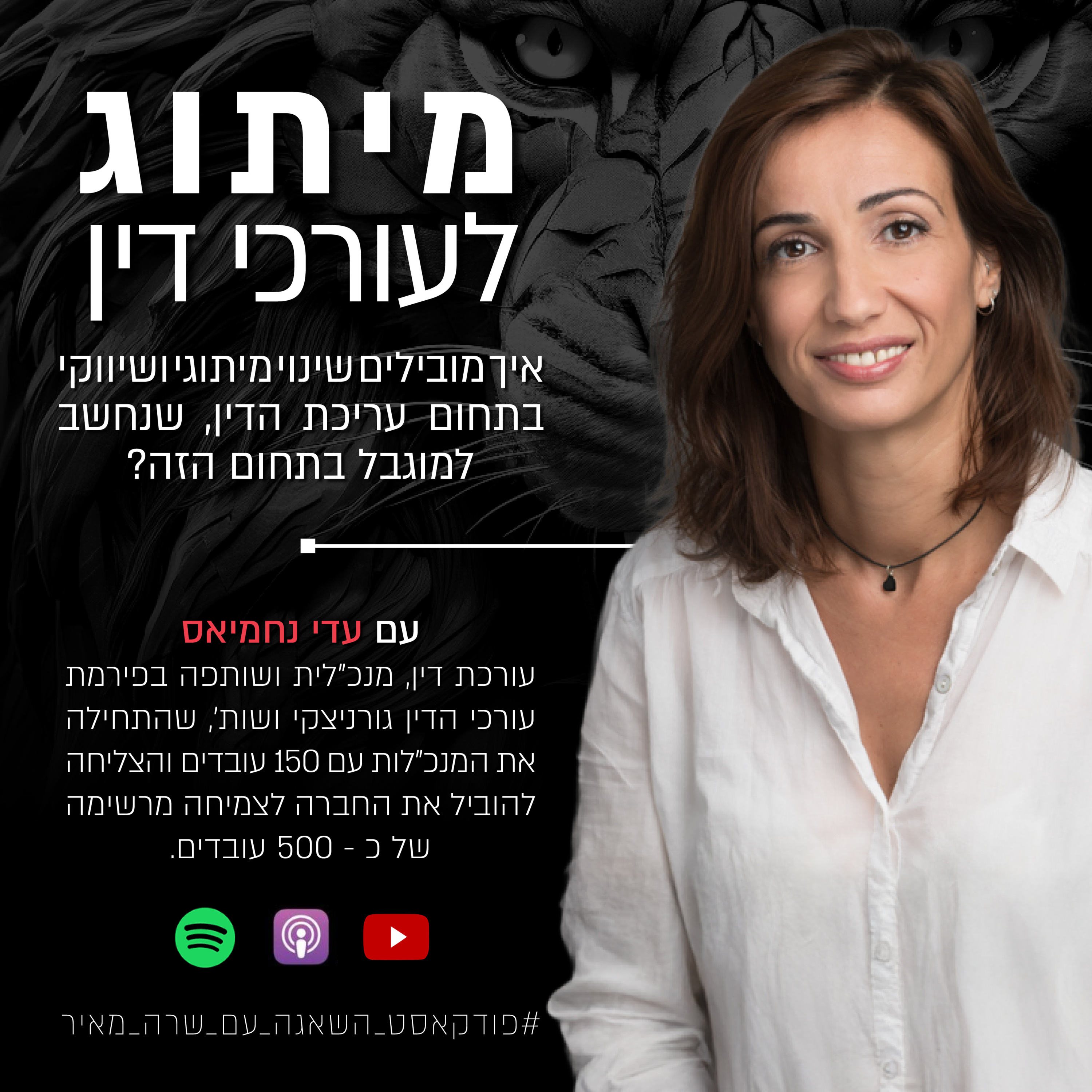 בפרק הזה אני מראיינת את עדי נחמיאס, עורכת דין, מנכ"לית ושותפה בפירמת עורכי הדין גורניצקי ושות', שהתחילה את המנכ"לות עם 150 עובדים והצליחה להוביל את החברה לצמיחה מרשימה של כ - 500 עובדים. עדי היא גם יועצת ומפתחת שיטות וכלי ניהול פרקטיים למשרדי עורכי דין.