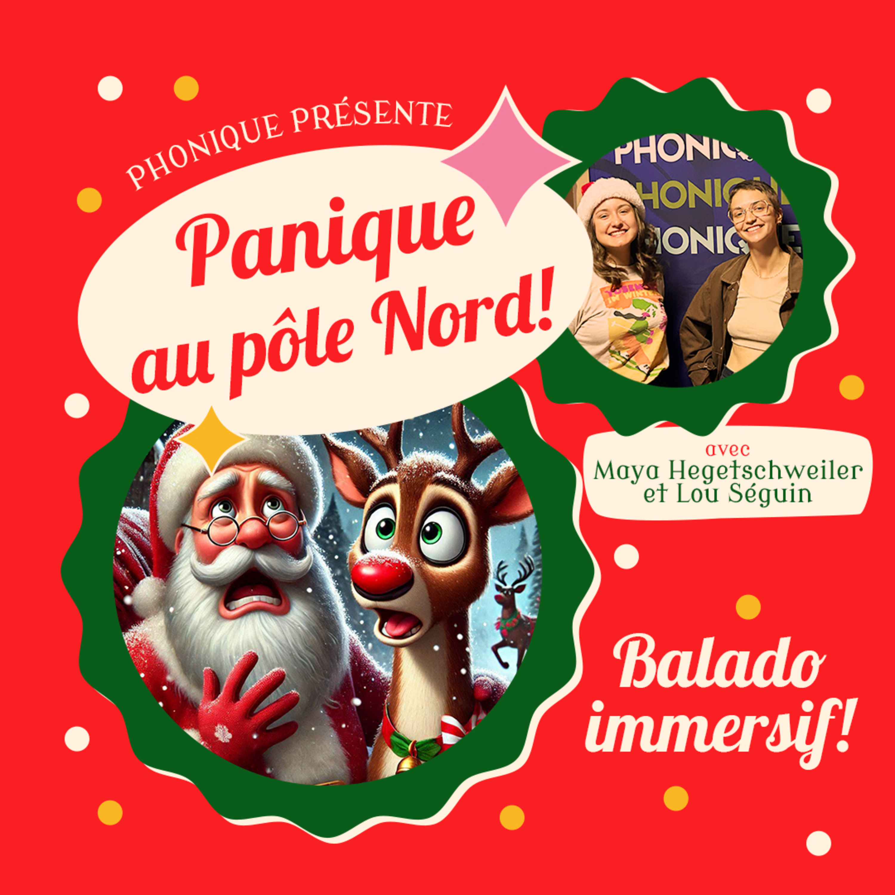 Pour accueillir le mois de décembre et la neige, l’équipe de Phonique est heureuse de lancer son balado de Noël intitulé Panique au pôle Nord, entièrement écrit et produit par nous.