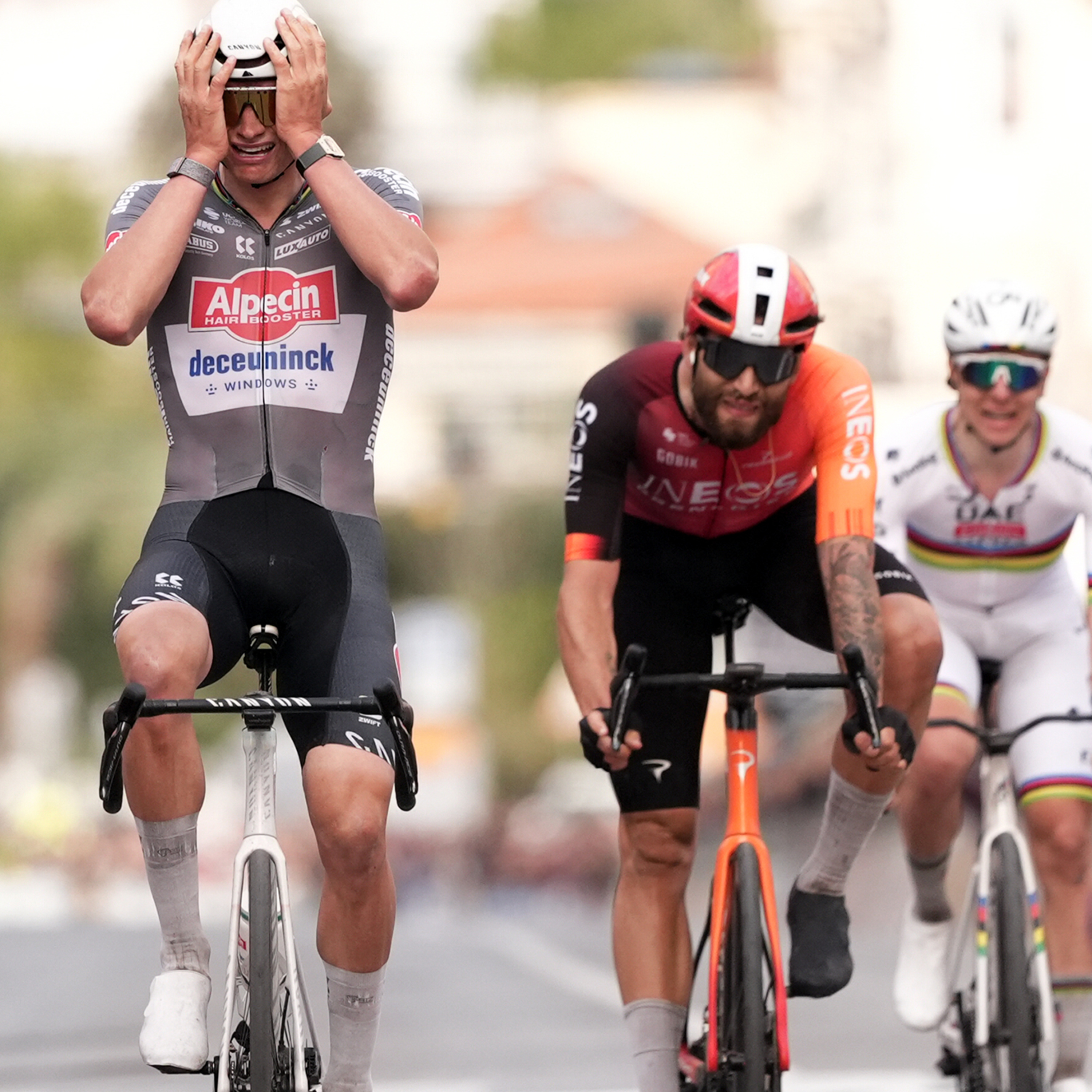 Van der Poel, Ganna e Pogacar foram protagonistas de uma das melhores edições da Milano-Sanremo dos últimos anos. Com o campeão do mundo a abrir as hostilidades na Cipressa, o homem da Ineos e da Alpecin conseguiram conter as investidas do camisola arco-íris e no final Van der Poel levou para casa o seu segundo título na clássica italiana. Voltaremos a ver este embate na época de clássicas?