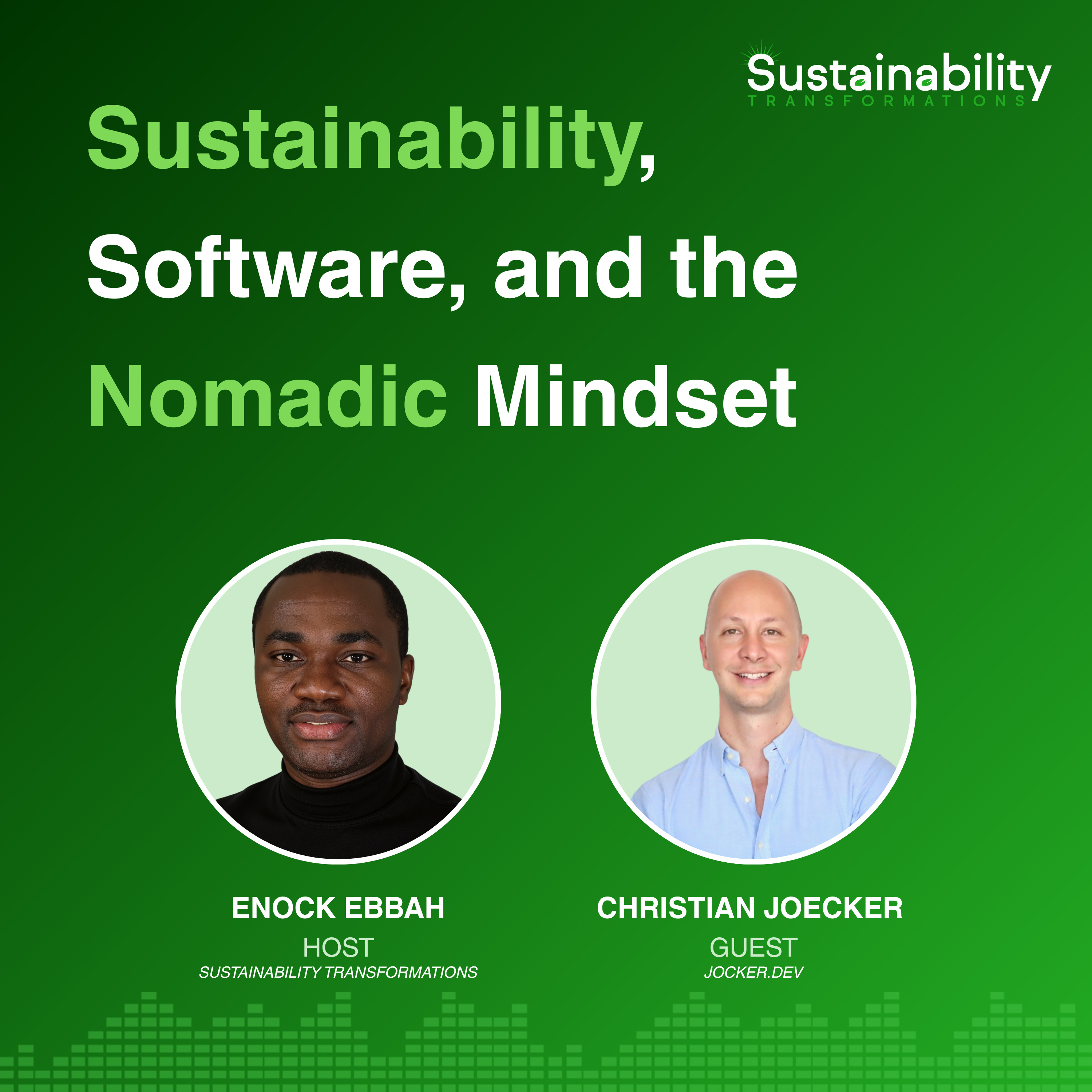 In this episode of the Sustainability TransformationsPodcast, Enock interviews Christian Joecker, a full stack developer and UX designer with a rich cultural background. They discuss how Christian's experiences living in different countries have shaped his approach to software design and development. The conversation explores the intersection of culture, creativity, and technology, emphasizing the importance of adaptability in the tech landscape. Christian shares insights on user experience, the challenges ofremote work, and the role of sustainability in digital nomadism. He also provides valuable advice for aspiring tech professionals and reflects on the impact of AI in the development process.